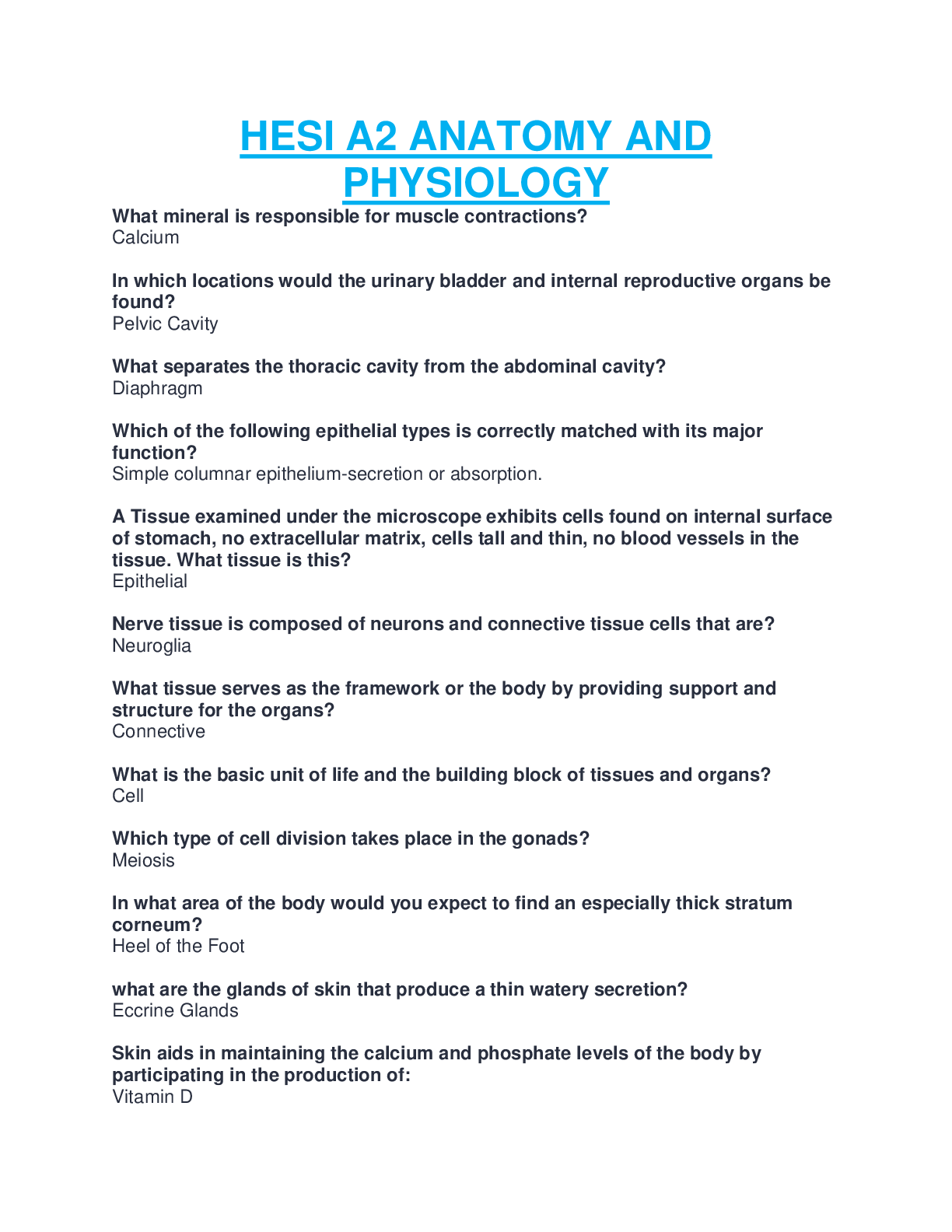 *NURSING > HESI > HESI A2 A&P PRACTICE EXAM QUESTIONS AND ANSWERS NEW UPDATED AND COMPLETE GUIDE|100% VERIFIED AND GRADED A+