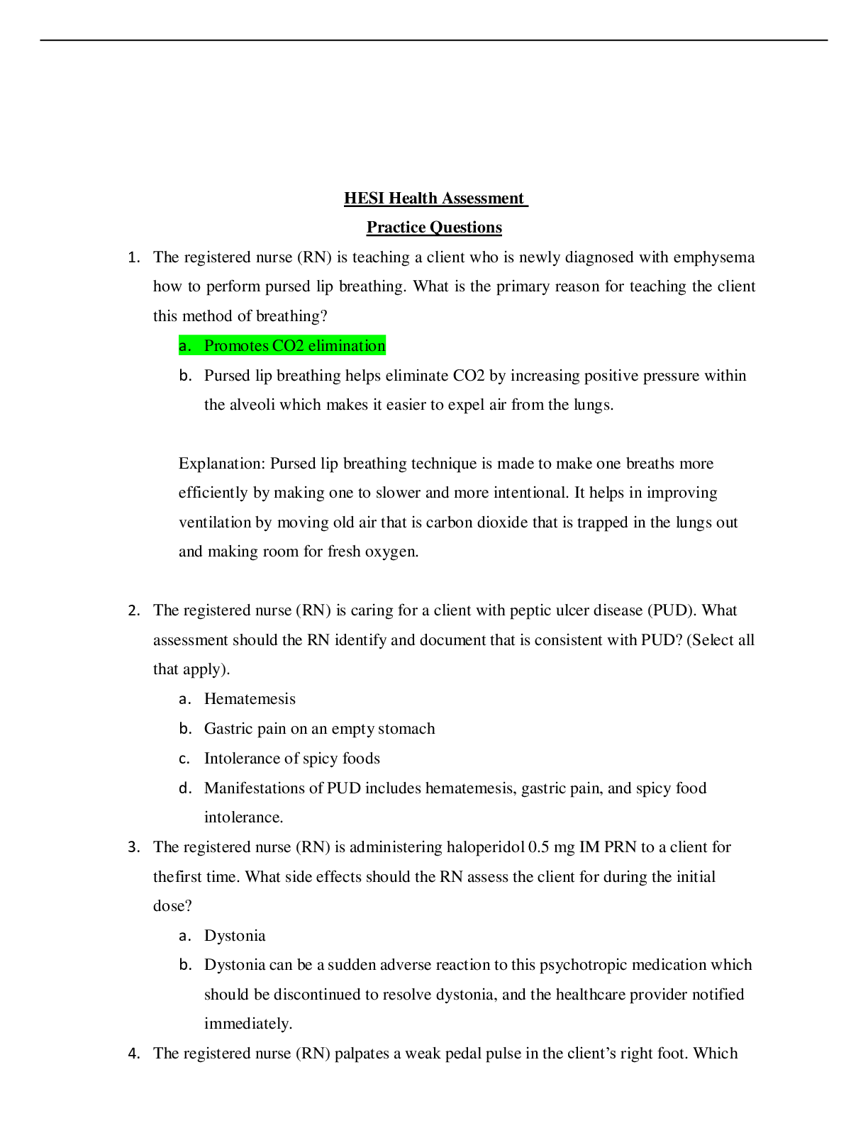 Health Care > HESI > HESI Health Assessment Practice Questions
