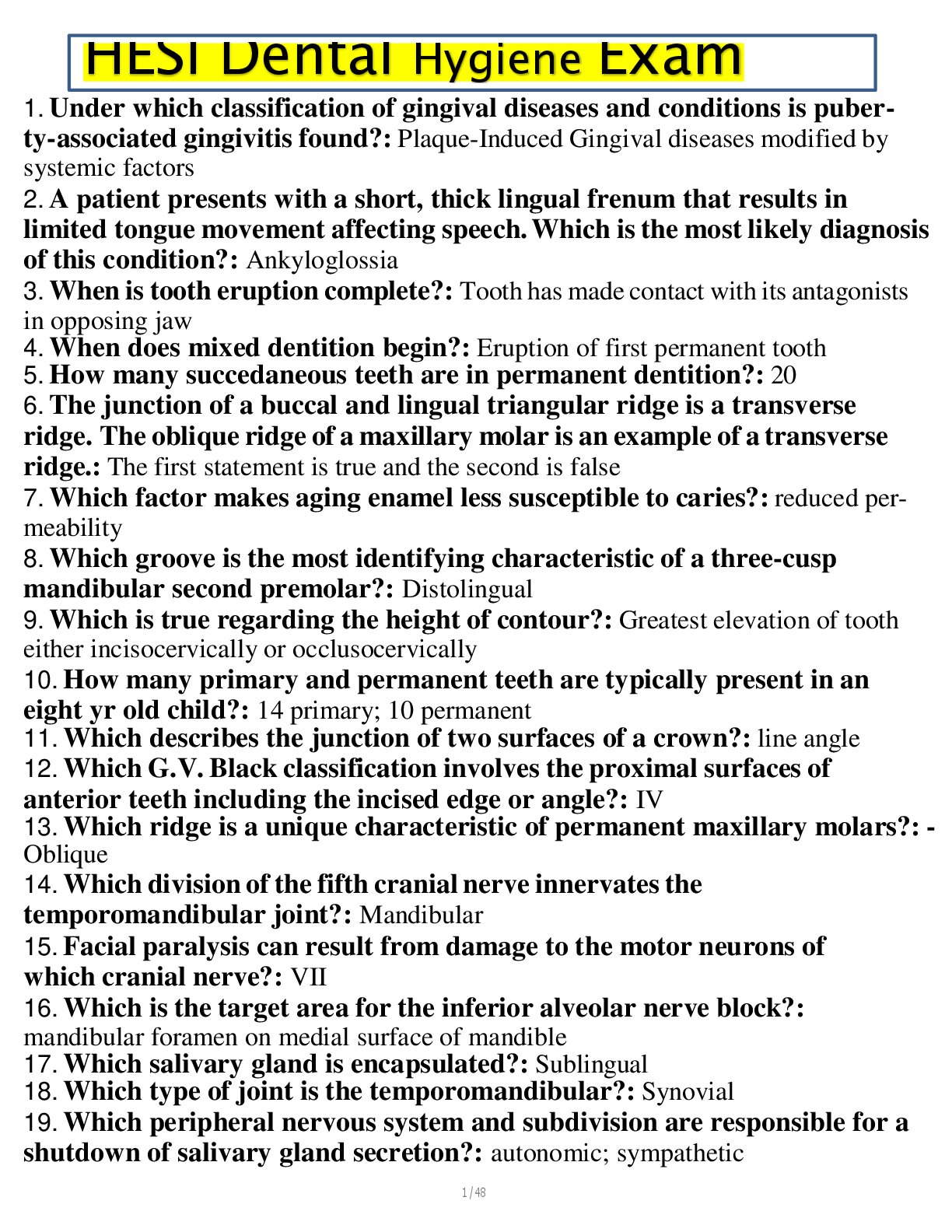 *NURSING > HESI > HESI DENTAL HYGIENE EXAM 2 VERSIONS