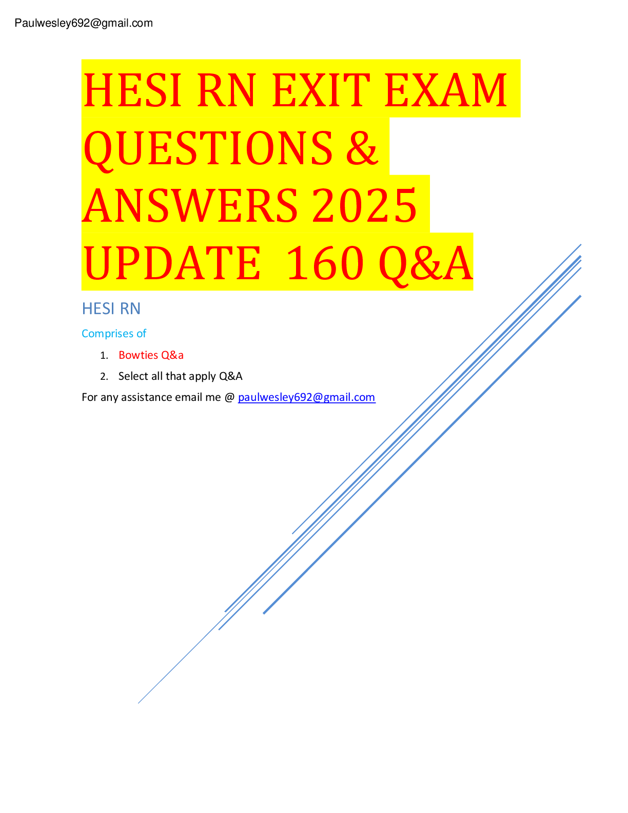 *NURSING > HESI > HESI RN EXIT EXAM QUESTIONS & ANSWERS 2025