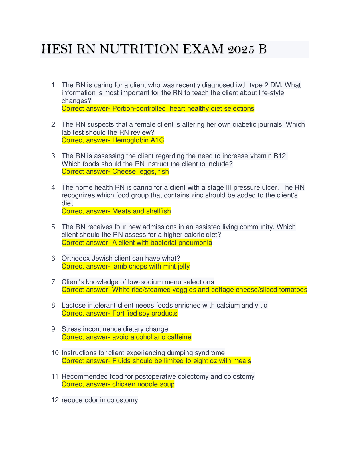 *NURSING > HESI > HESI RN NUTRITION EXAM 2025 B