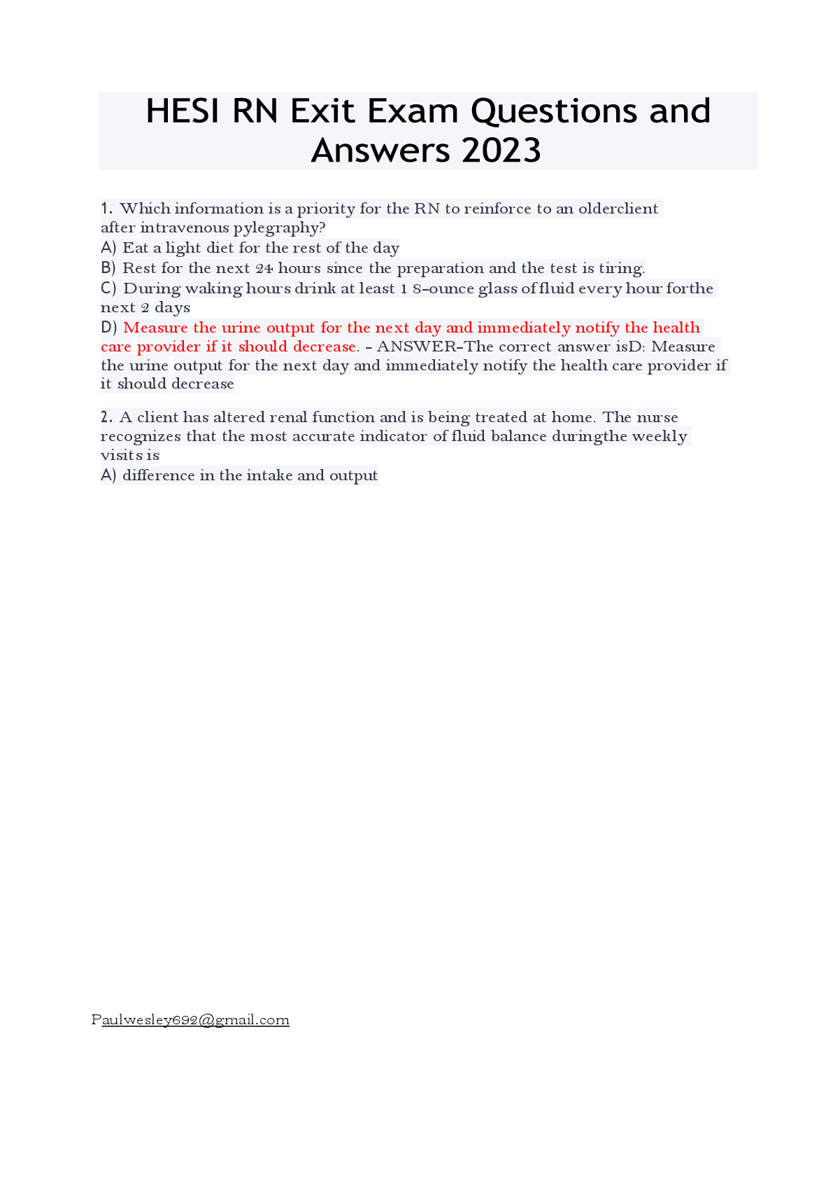 HESI > HESI > HESI RN Exit Exam Questions and Answers 2025