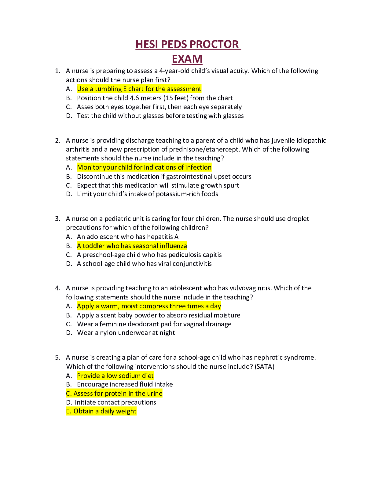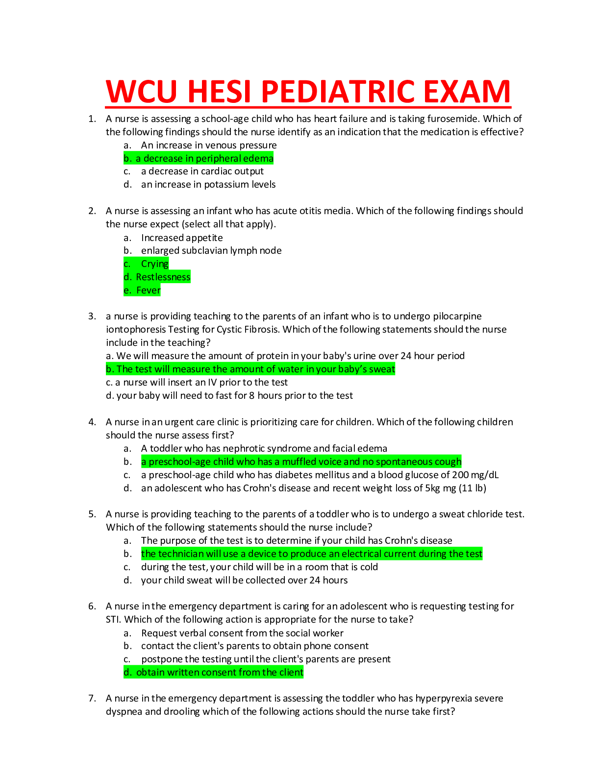 *NURSING > HESI > WCU HESI PEDS PROCTOR EXAM (2021/2022) SOLUTIONS COMPLETE GUIDE WITH 150 CORRECT QUESTIONS AND ANSWERS.