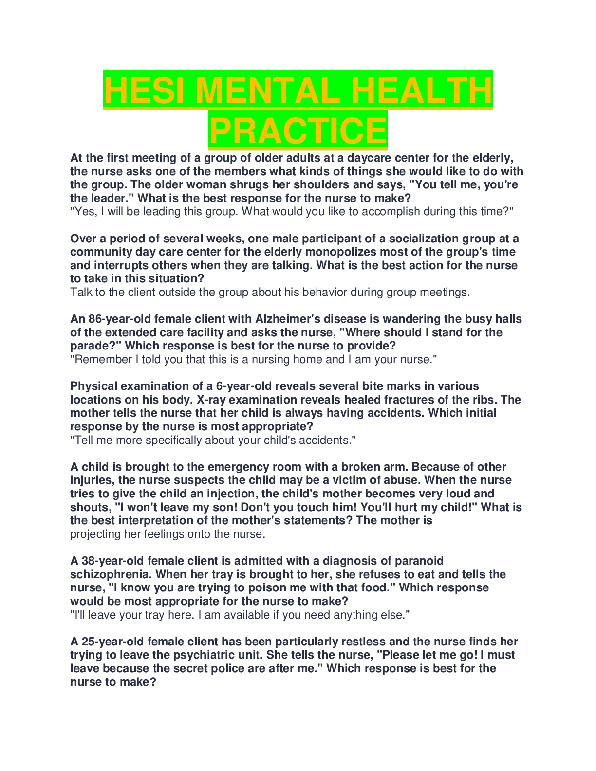 *NURSING > HESI > HESI MENTAL HEALTH EXAM PRACTICE QUESTIONS AND ANSWERS,NEW UPDATED SOLUTIONS.