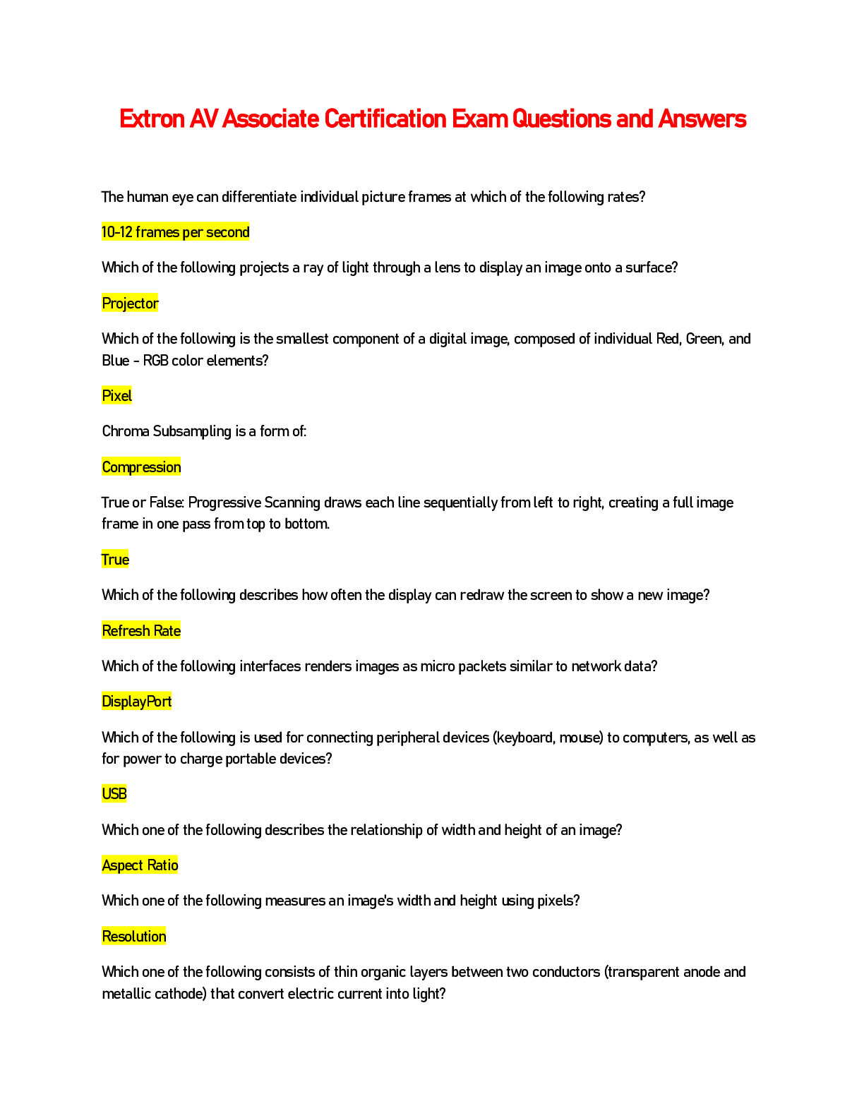 *NURSING > HESI > Extron AV Associate Certification Exam Questions and Answers