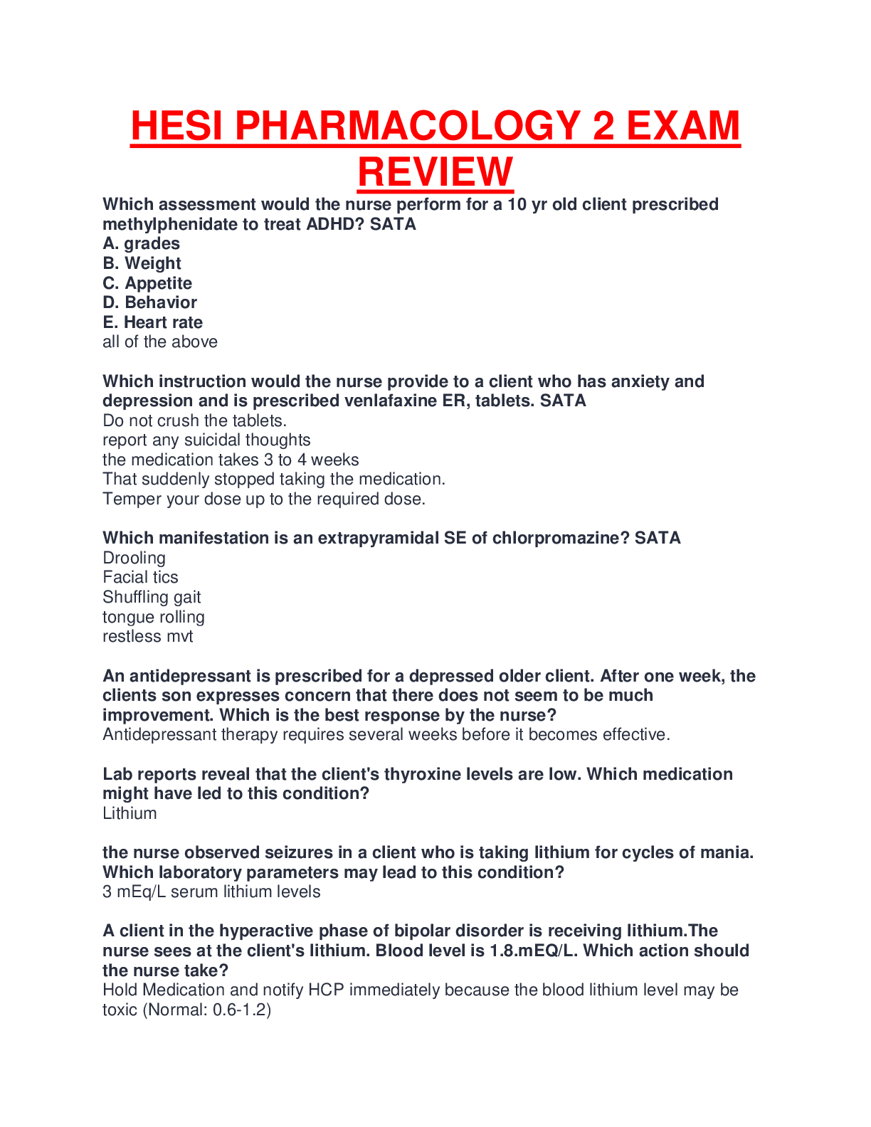 *NURSING > HESI > HESI PHAMACOLOGY 2 EXAM REVIEW|VERIFIED AND RATED A,DOWNLOAD TO PASS.