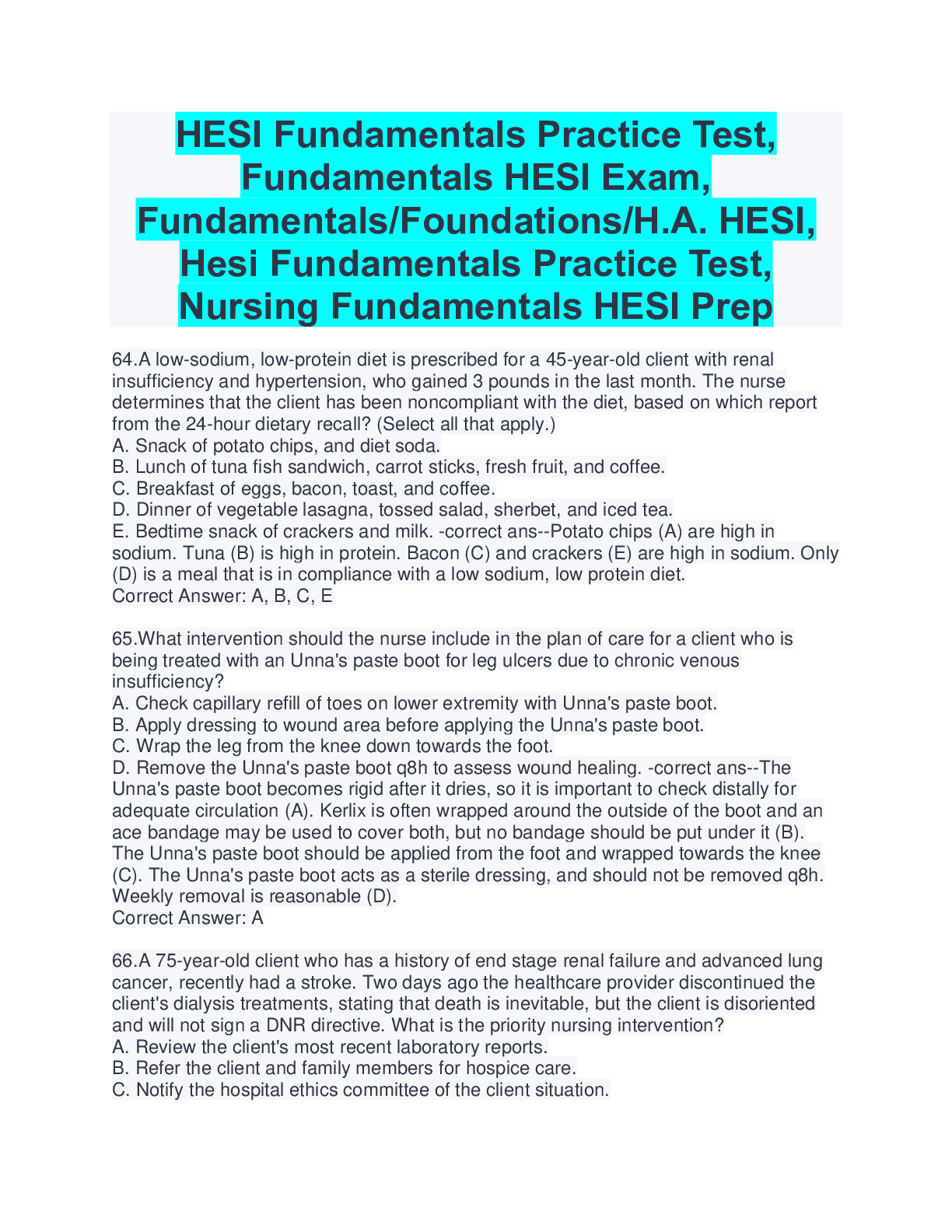 *NURSING > HESI > HESI Fundamentals Practice Test, Fundamentals HESI Exam, Fundamentals/Foundations/H.A. HESI, Hesi Fundamentals Practice Test, Nursing Fundamentals HESI Prep