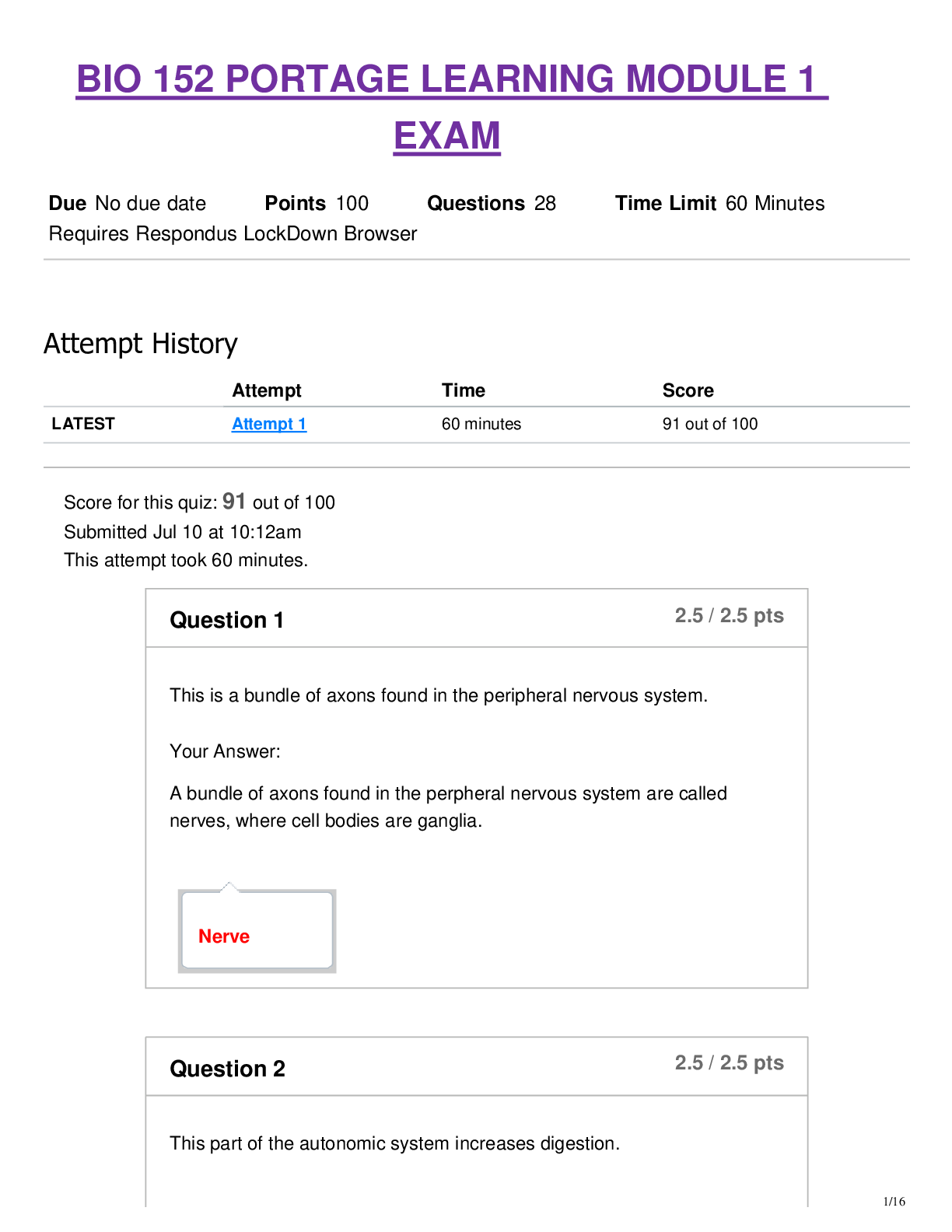 *NURSINGHESI  > PORTAGE LEARNING BIO 152 MODULE 1 EXAM (REQUIRES RESPONDUS LOCK DOWN BROWSER + WEBCAM)
