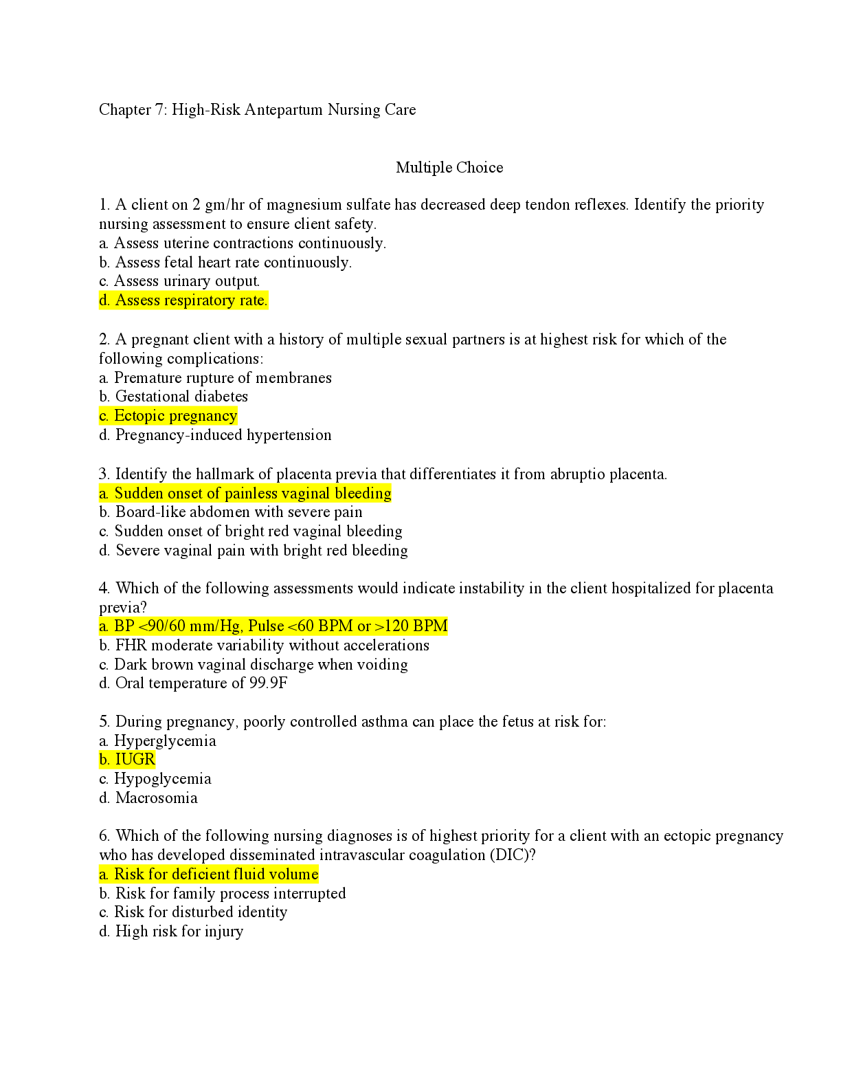 *NURSING > ATI MEDICAL SURGICAL > NUR 2310 MATERNAL EXAM QUESTIONS AND ANSWERS