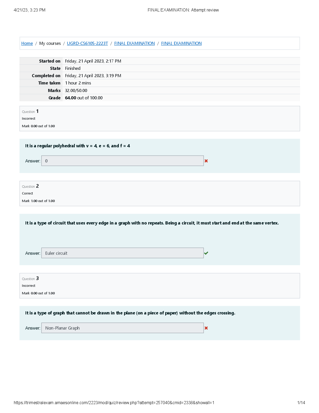 *NURSINGATI MEDICAL SURGICAL  > UGRD CS6105 FINAL EXAM 2023 - AMA Computer University