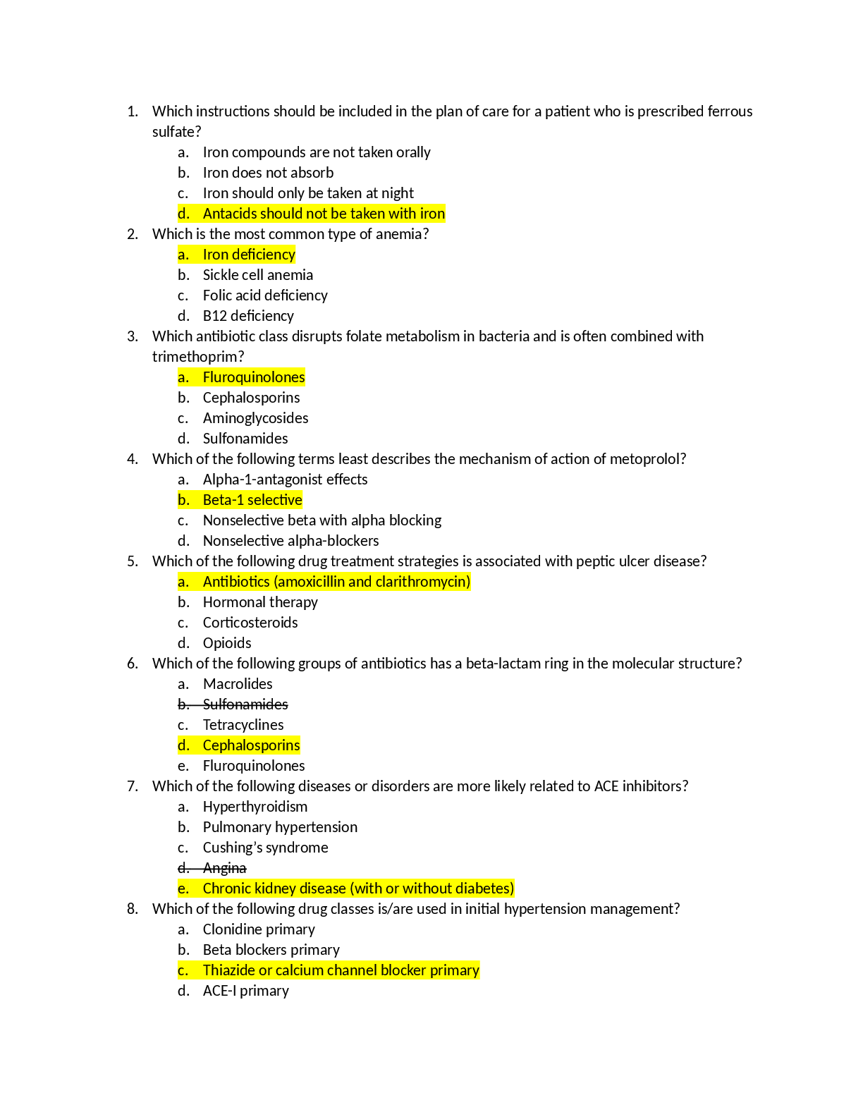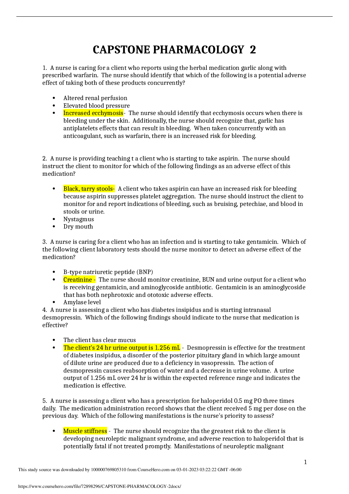 *NURSING > MEDICAL STUDY RESOURCES > CAPSTONE PHARMACOLOGY 2 QUESTIONS AND ANSWERS 2023