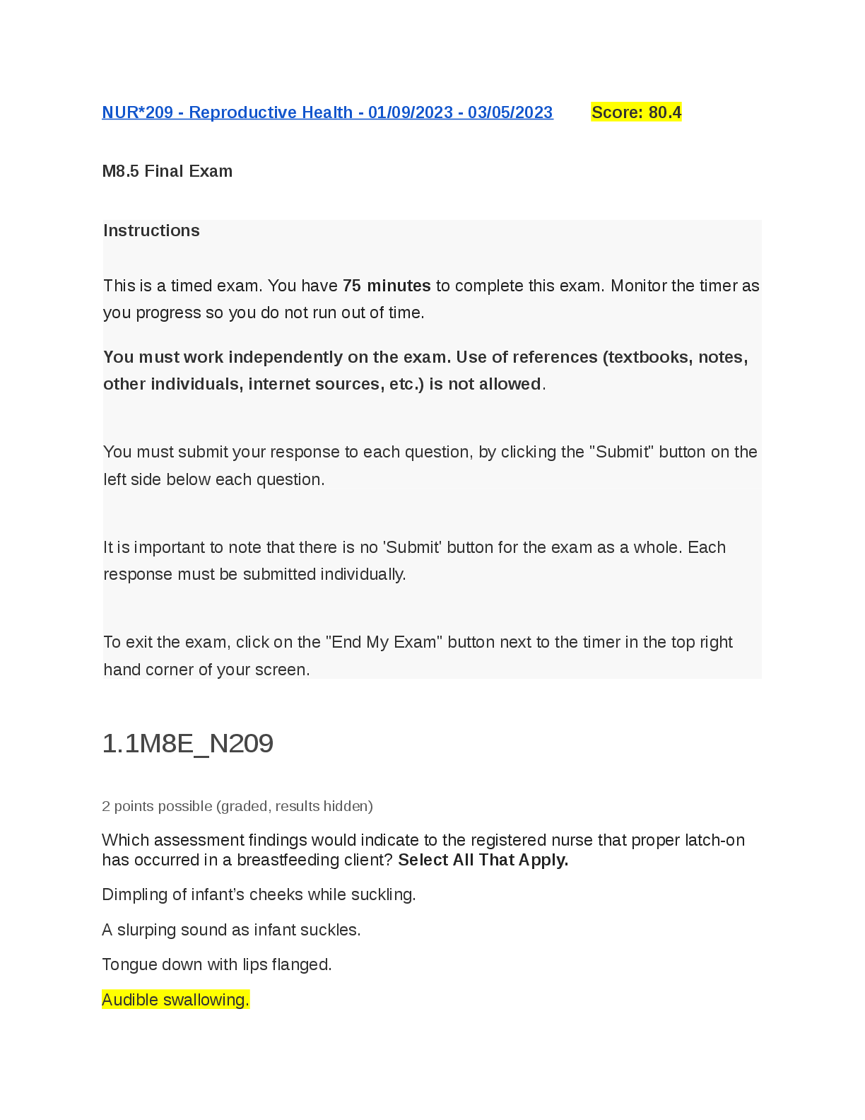*NURSING > MEDICAL STUDY RESOURCES > NUR 209 - Reproductive Health Exam Questions and Answers