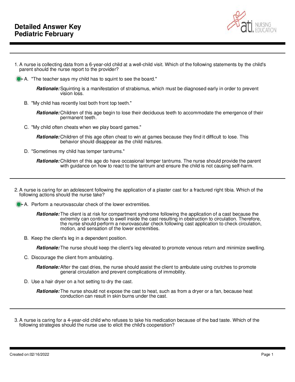 *NURSING > MEDICAL STUDY RESOURCES > Pediatric Nursing Questions and Answers 2023