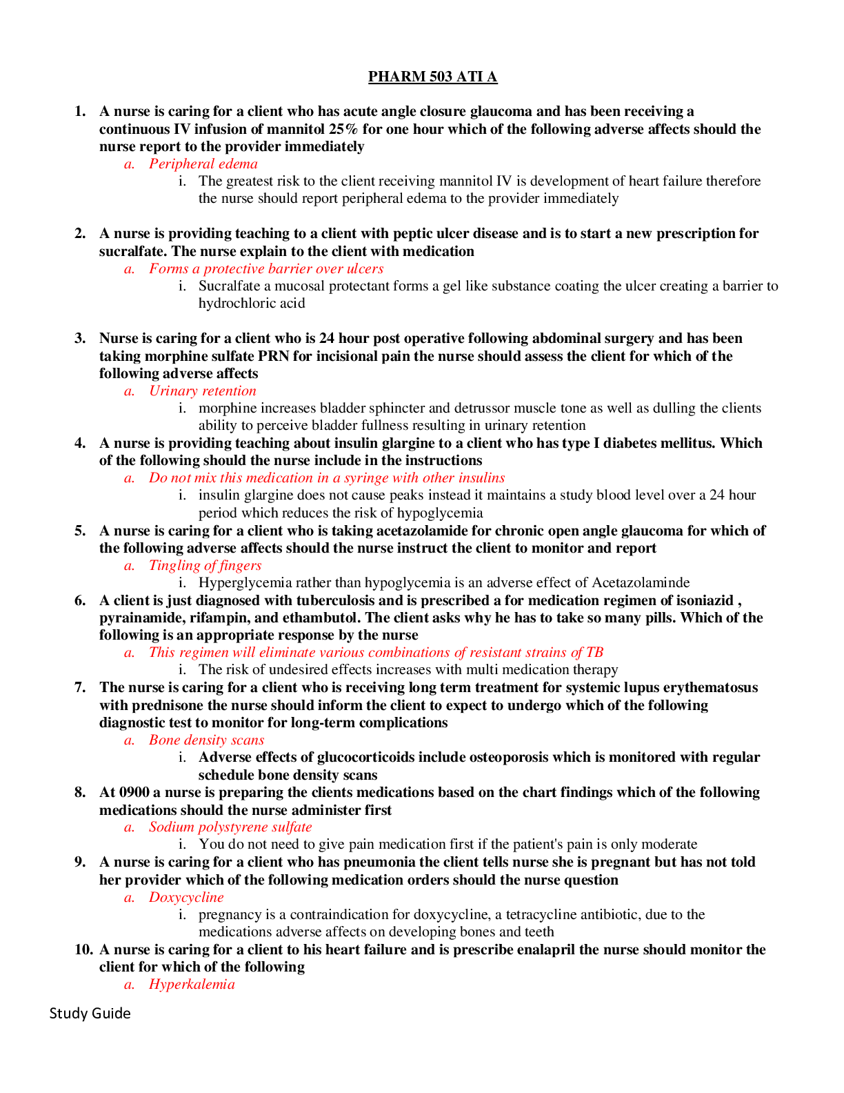*NURSING > ATI MEDICAL SURGICAL > PHARM 503 ATI A Complete Solutions 2020