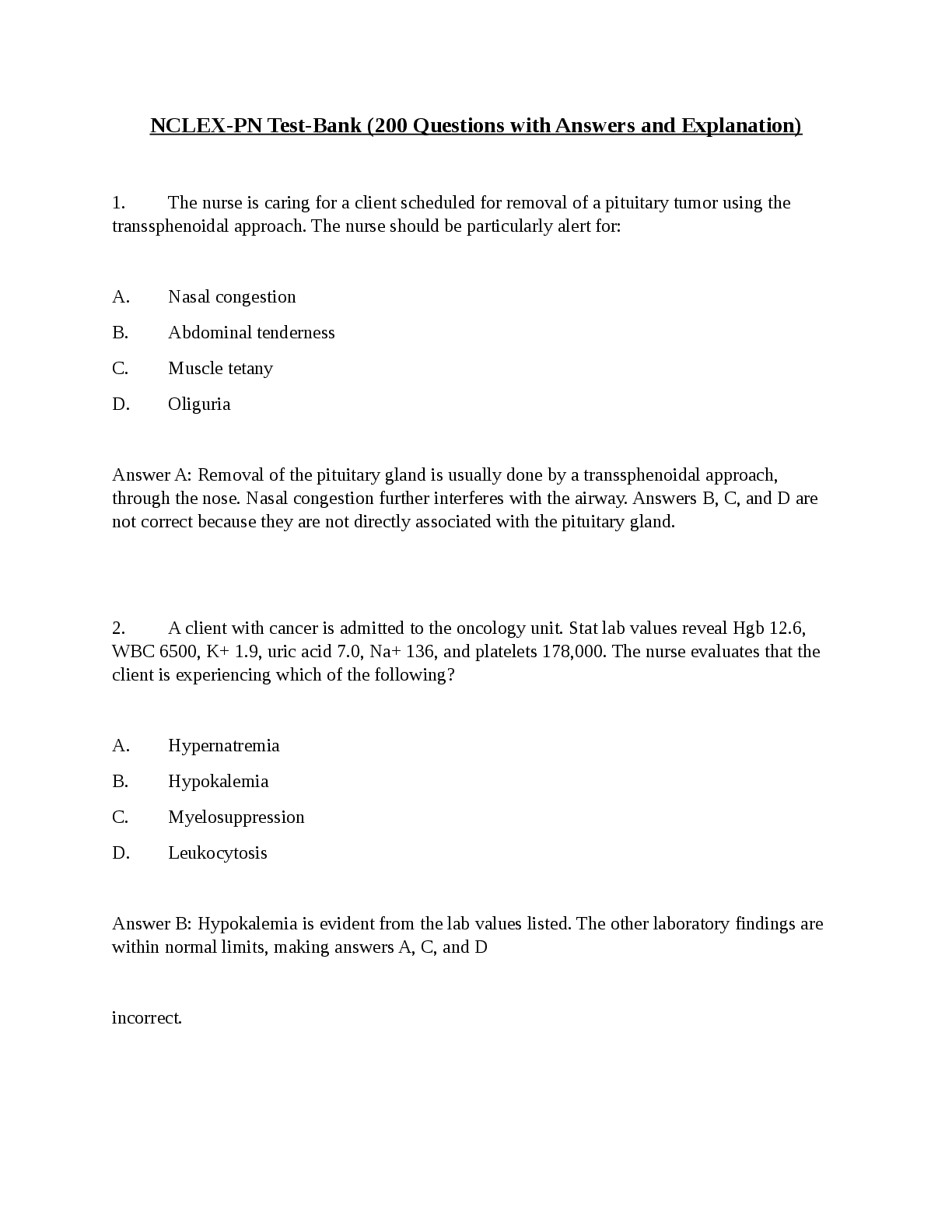 *NURSING > ATI MEDICAL SURGICAL > NCLEX-PN Test-Bank (200 Questions with Answers and Explanation)
