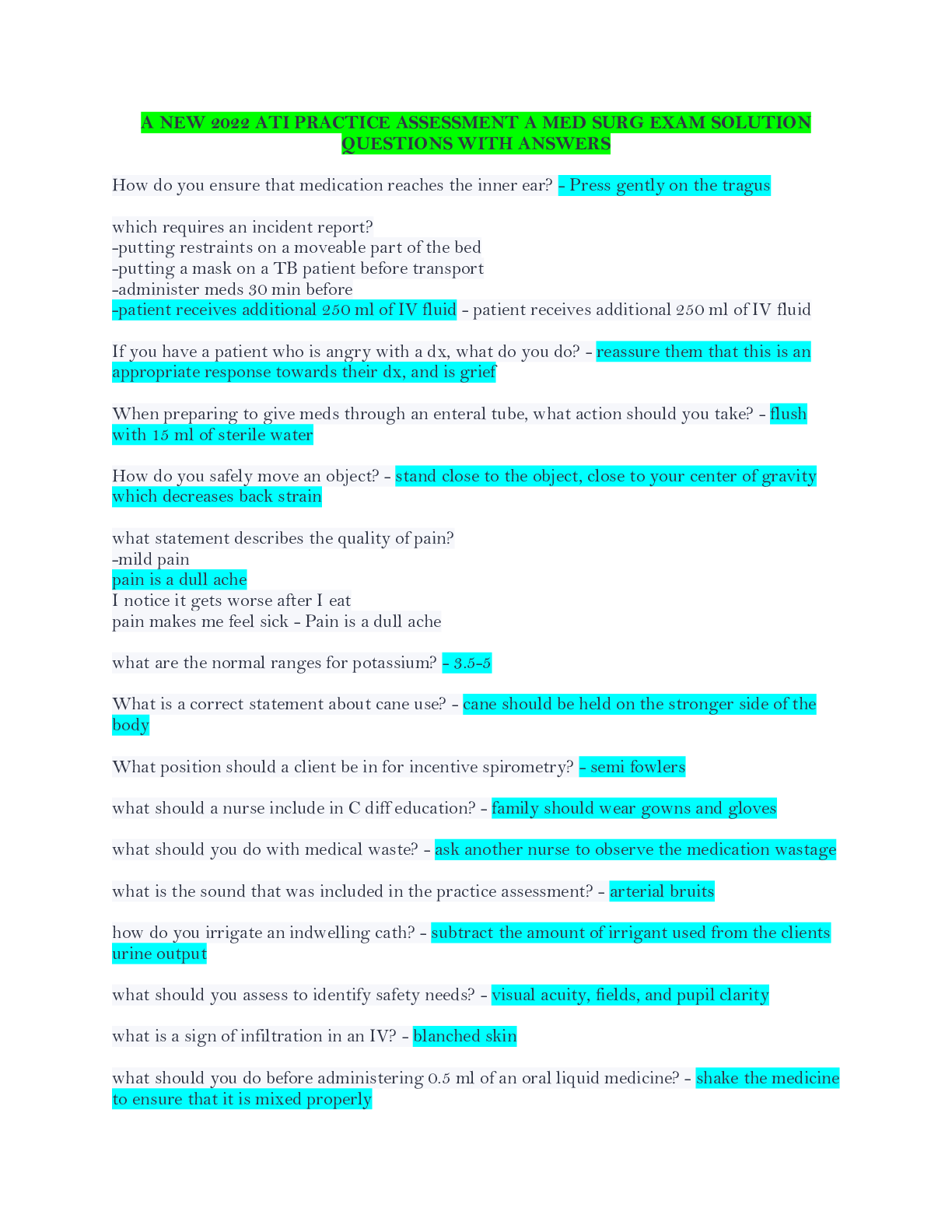*NURSING > ATI MEDICAL SURGICAL > NEW PRACTICE EXAM SOLUTION QUESTIONS AND ANSWERS FOR ATI CAPSTONE MED SURG