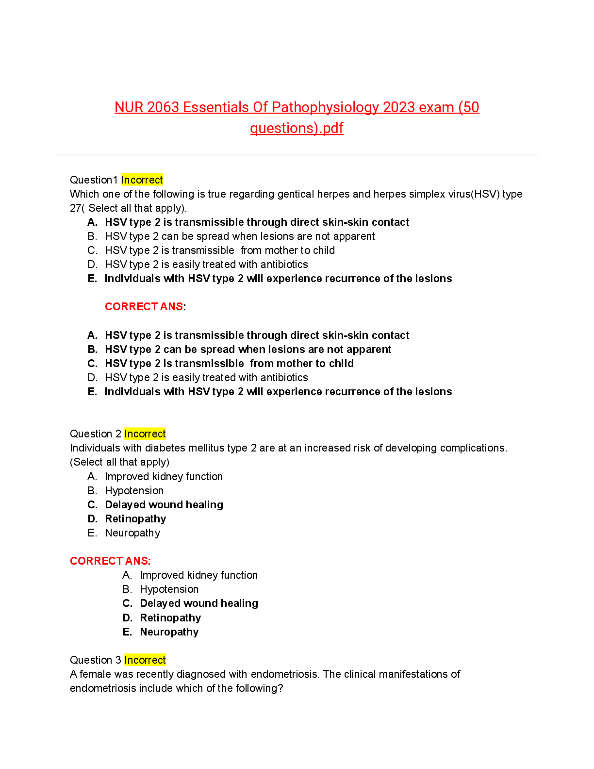 *NURSING > ATI MEDICAL SURGICAL > NUR 2063 Essentials of Pathophysiology Exam 2024 Latest
