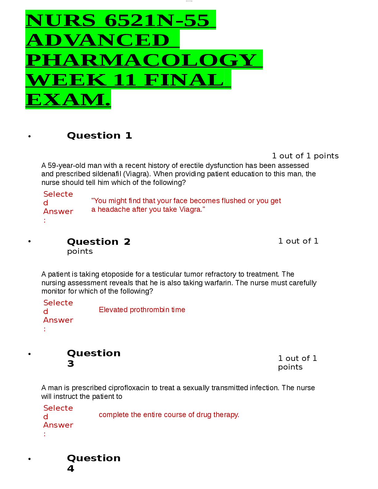 *NURSING > ATI MEDICAL SURGICAL > NURS 6521N-55 ADVANCED PHARMACOLOGY WEEK 11 FINAL EXAM