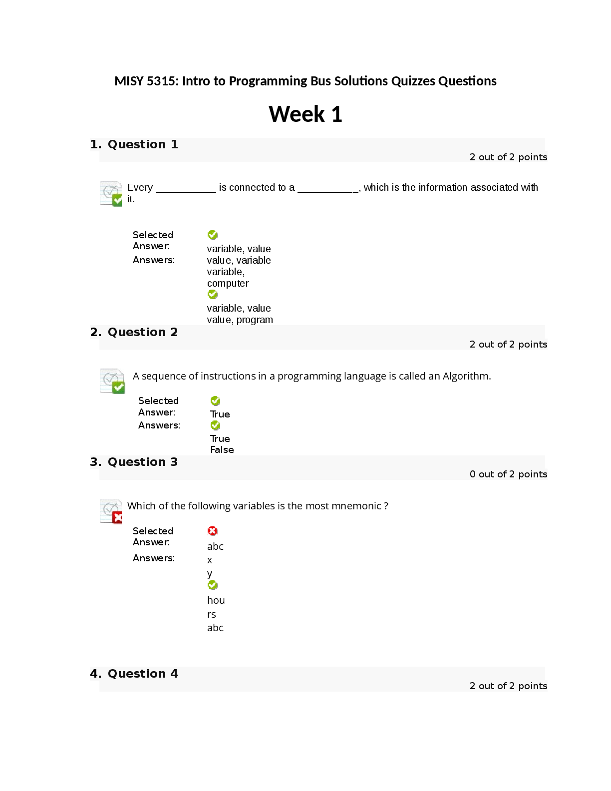 *NURSING > ATI MEDICAL SURGICAL > MISY 5315 Intro to Programming Bus Solutions Quizzes Question