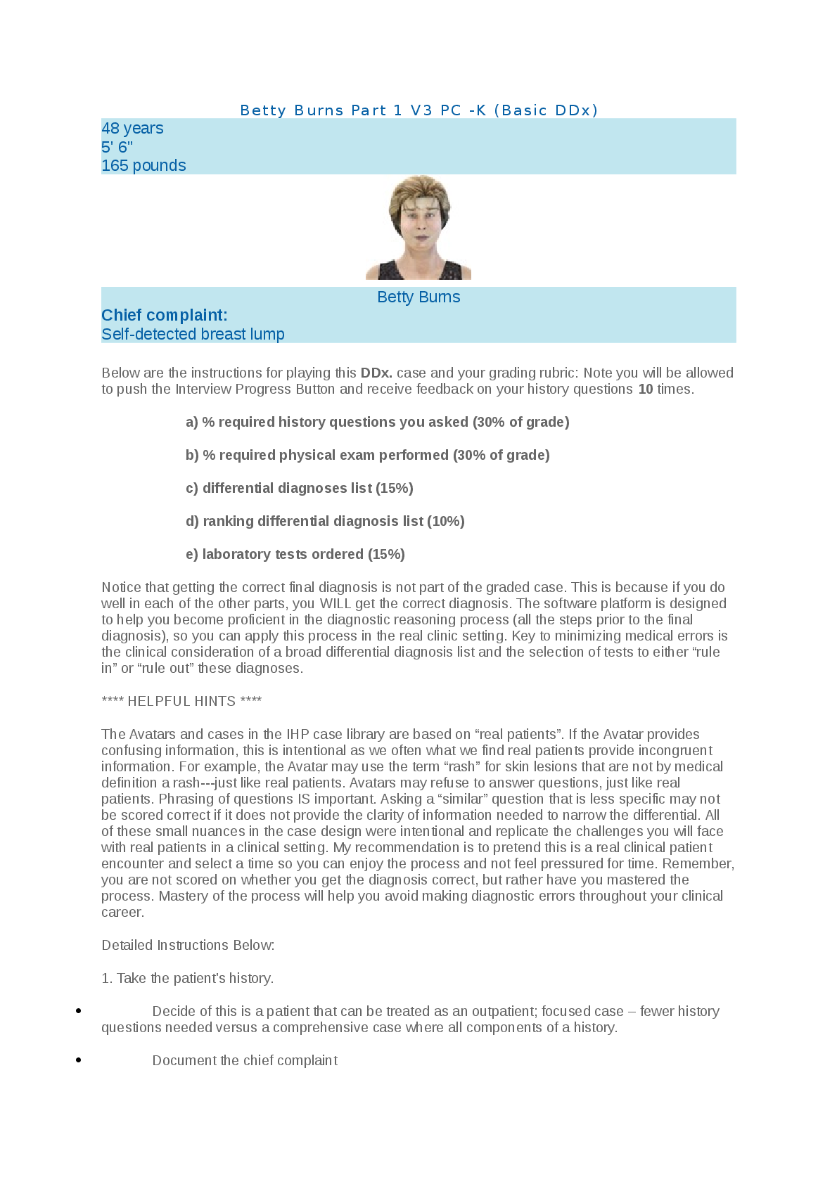 *NURSING > ATI MEDICAL SURGICAL > iHUMAN Betty Burns Part 1 V3 PC -K