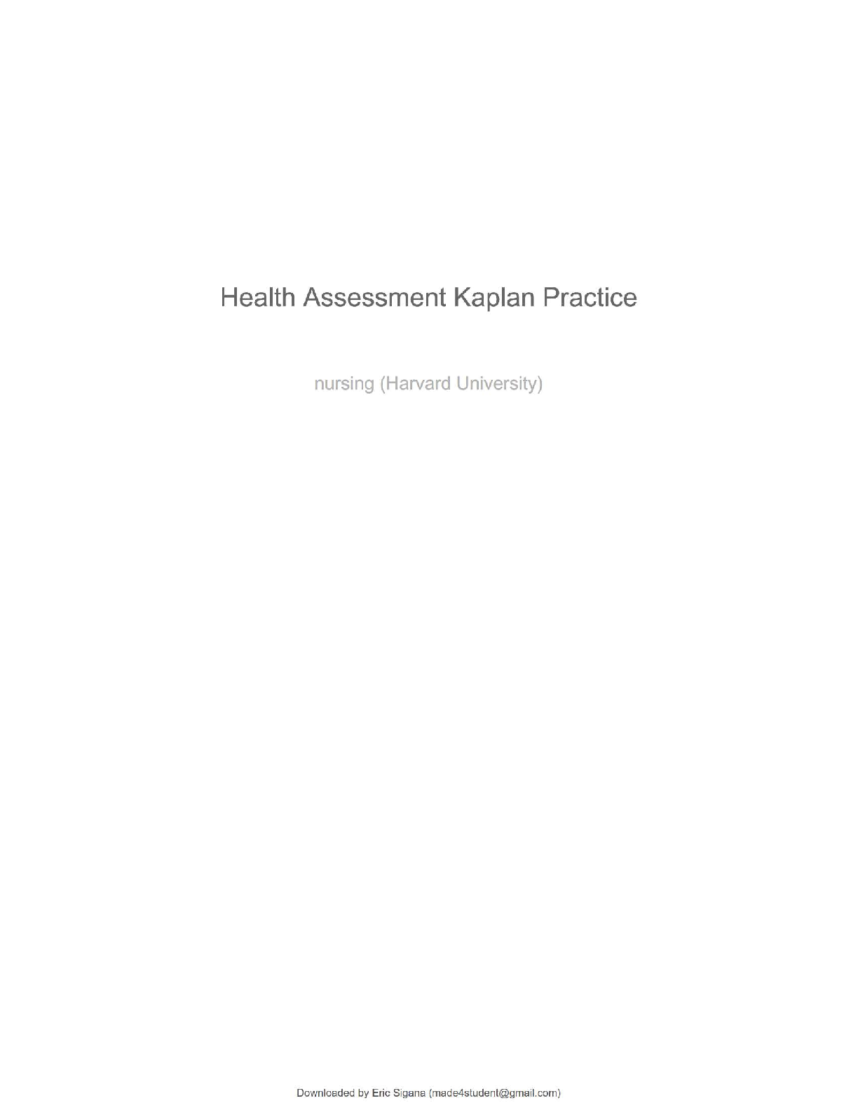 *NURSING > QUESTIONS and ANSWERS > NURS 230 – Health Assessment Kaplan Practice | NCLEX-Style Nursing Questions (Harvard University) | Complete Study Guide with Verified Questions and Correct Answers | 100% Accurate | Grade A