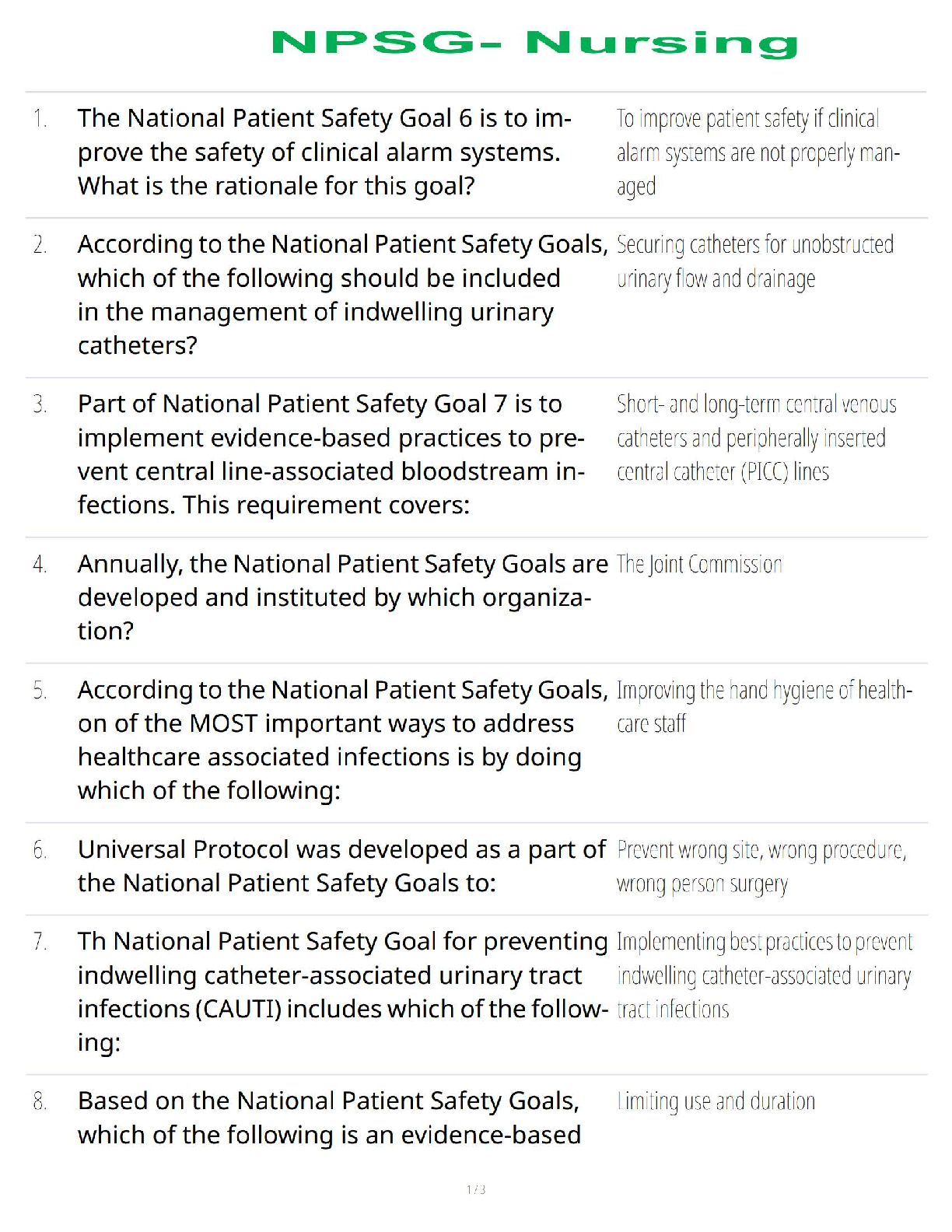 *NURSING > QUESTIONS and ANSWERS > NURS 150 – National Patient Safety Goals | Nursing | Complete Study Guide with Verified Questions and Correct Answers | 100% Accurate | Grade A