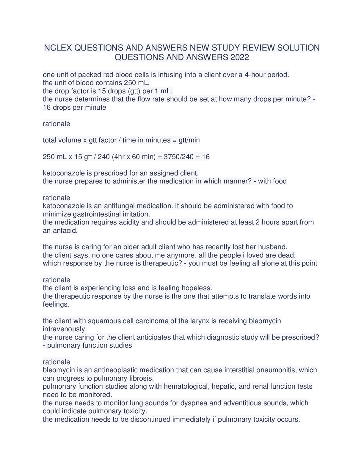 EducationQUESTIONS and ANSWERS  > NCLEX QUESTIONS AND ANSWERS NEW STUDY REVIEW SOLUTION QUESTIONS AND ANSWERS 2022