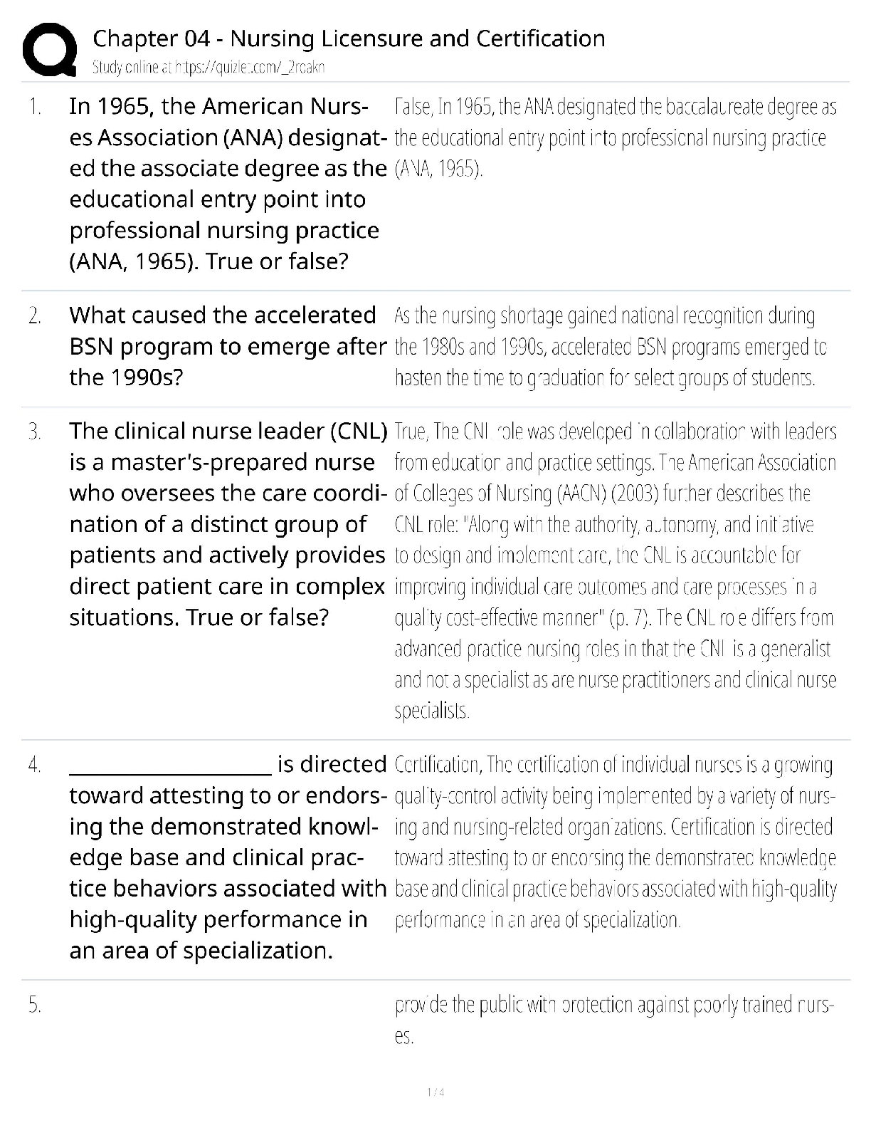 CNA - Certified Nursing Assistant > QUESTIONS and ANSWERS > Nursing Licensure & Certification (Ch. 4) / 2025 NCLEX & State Board Guide / Pass Guarantee
