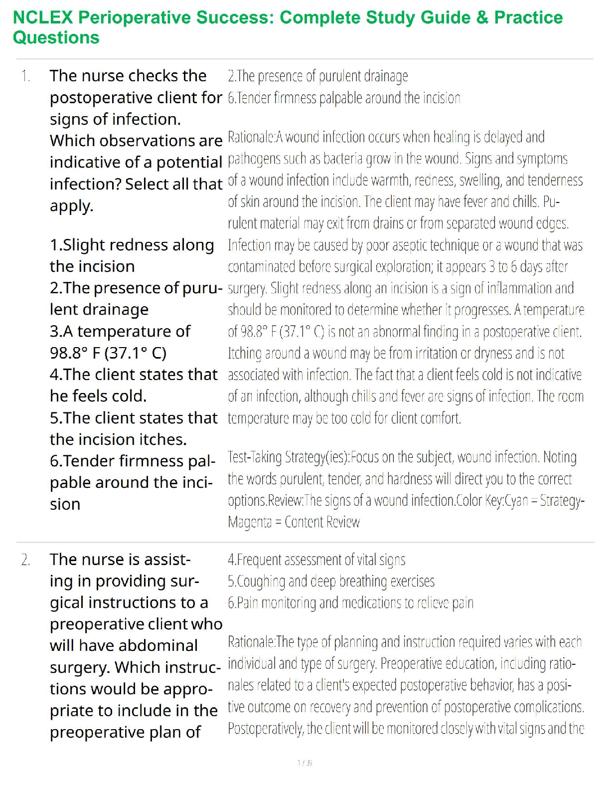 *NURSING > QUESTIONS and ANSWERS > NCLEX Perioperative Success: Complete Study Guide & Practice Questions