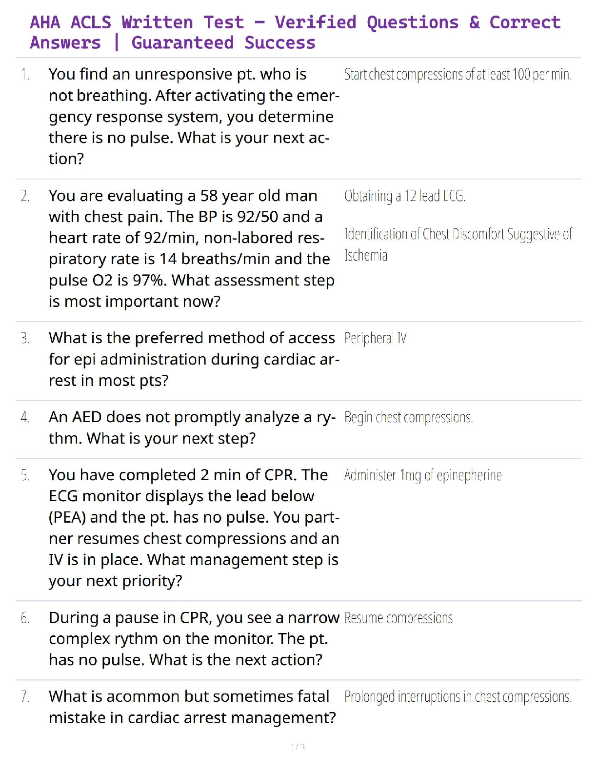 *NURSING > QUESTIONS and ANSWERS > AHA ACLS Written Test – Verified Questions & Correct Answers