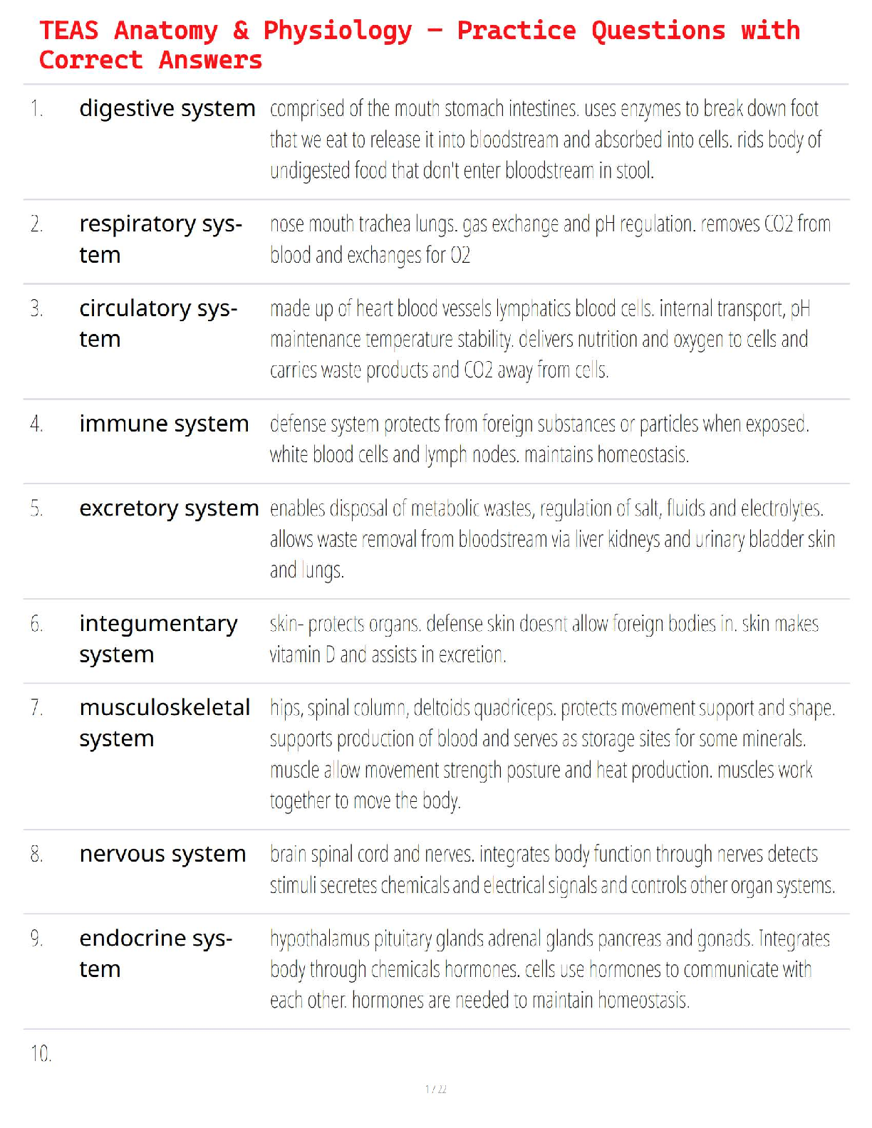 Human Anatomy and Physiology > QUESTIONS and ANSWERS > TEAS Anatomy & Physiology – Practice Questions with Correct Answers