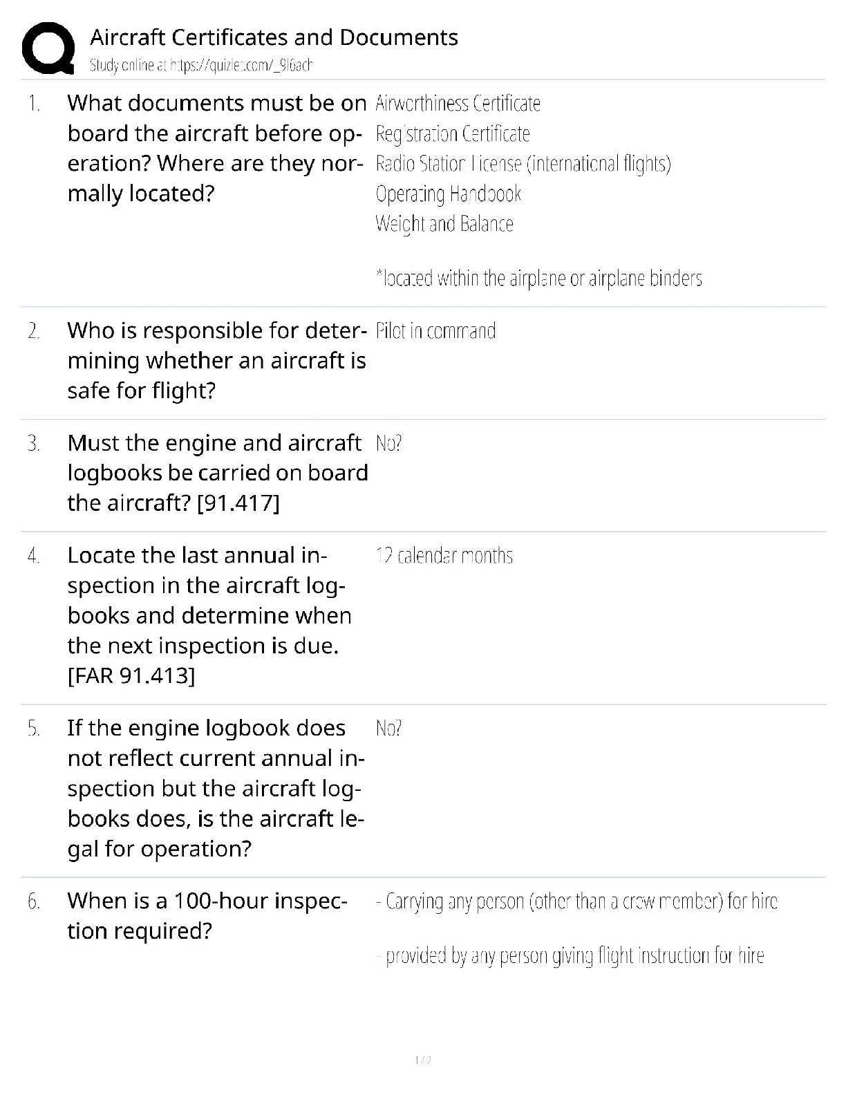 Aviation Maintenance Technician > QUESTIONS and ANSWERS > Aircraft Certificates & Documents / FAA Part 91 & 135 Guide 2024 / Airworthiness Compliance / Pilot & Mechanic Test Bank