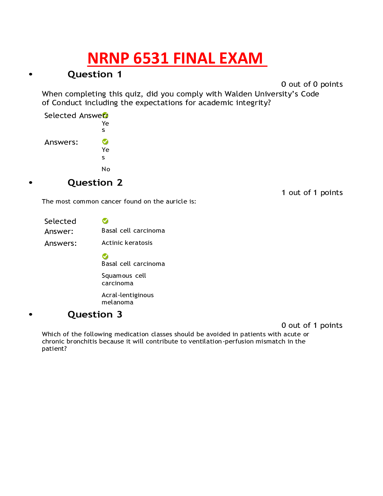 Health Care > QUESTIONS and ANSWERS > NRNP 6531 14- Knowledge check ;Prim Care Adults across Life span; Spring Latest 2022; week 1-11