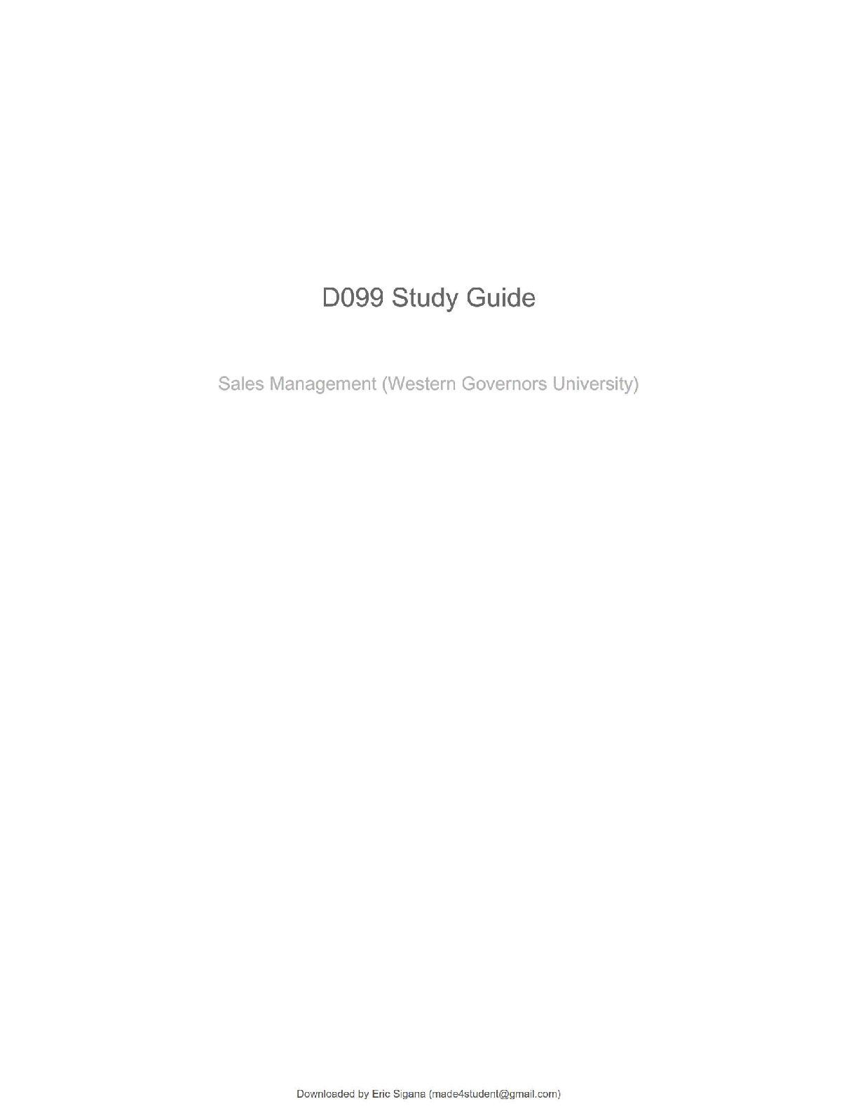 Business Management > QUESTIONS and ANSWERS > D099 Study Guide – Relationship Between Sales and Marketing Sales Management (Western Governors University) | Strategic Integration, Key Concepts & Practice Insights Grade A