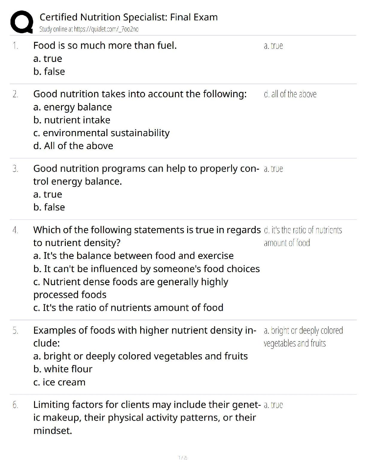 *NURSING > QUESTIONS and ANSWERS > Certified Nutrition Specialist Final Exam / Score 100% / New 2025 Update / Study Guide + Clinical Nutrition Case Studies