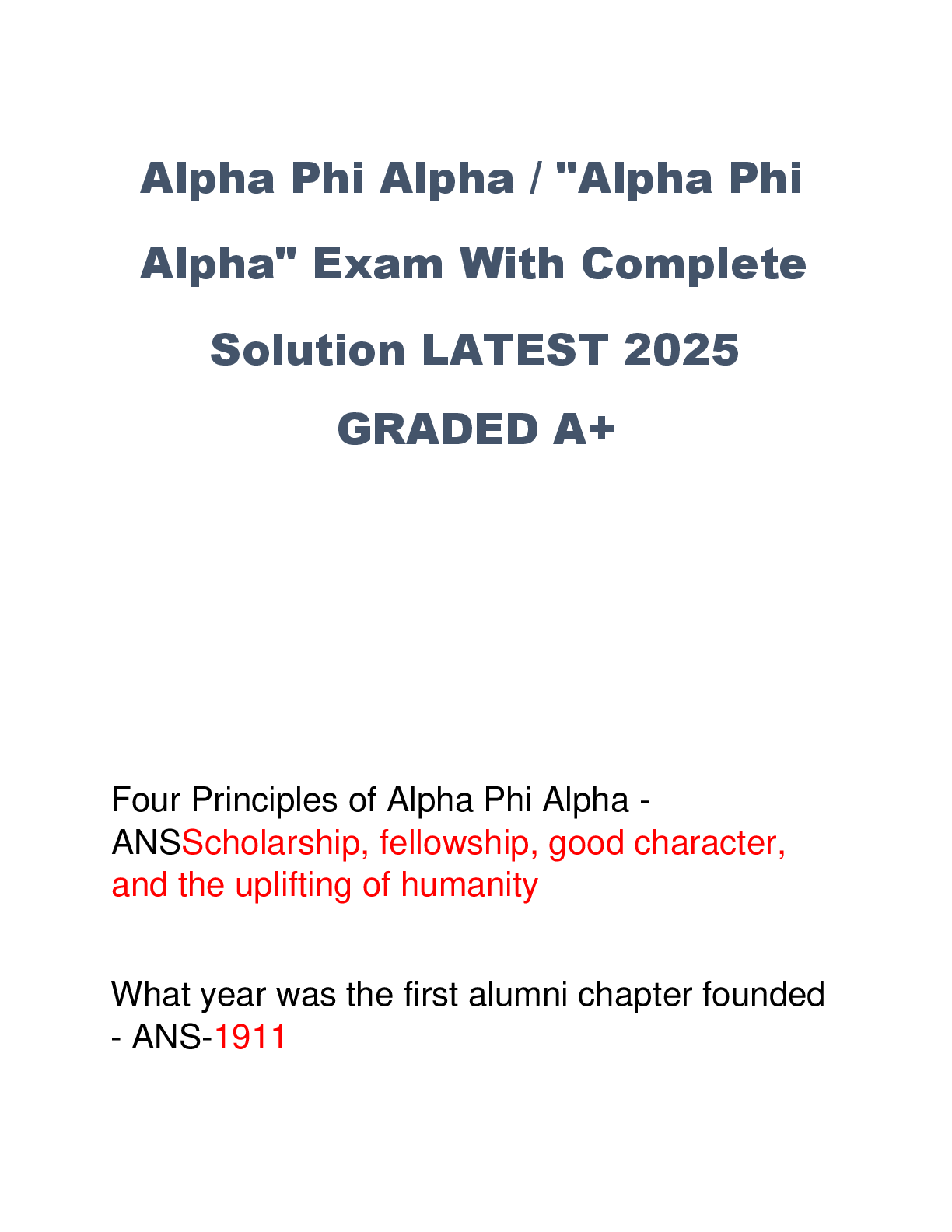 *NURSING > QUESTIONS and ANSWERS > Alpha Phi Alpha / "Alpha Phi Alpha" Exam With Complete Solution LATEST 2025 GRADED A+