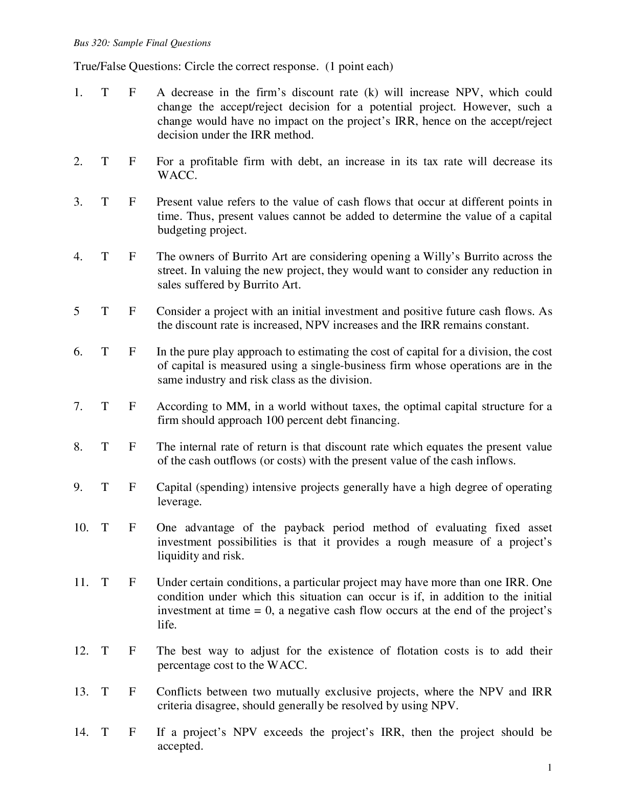 Business > QUESTION PAPER (QP) > Emory University BUS 320 Sample final