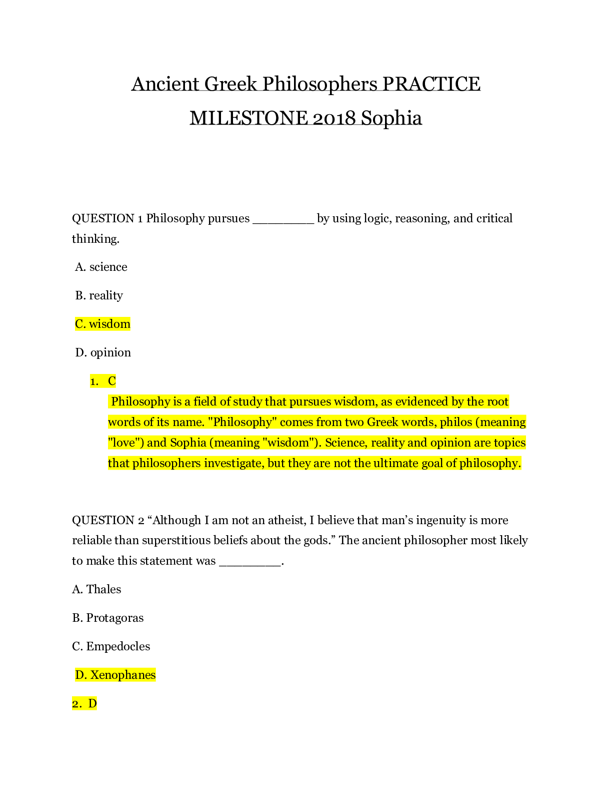 Philosophy > SOPHIA PATHWAY > Ancient Greek Philosophers PRACTICE MILESTONE 2018 Sophia | Ancient Greek Philosophers PRACTICE MILESTONE
