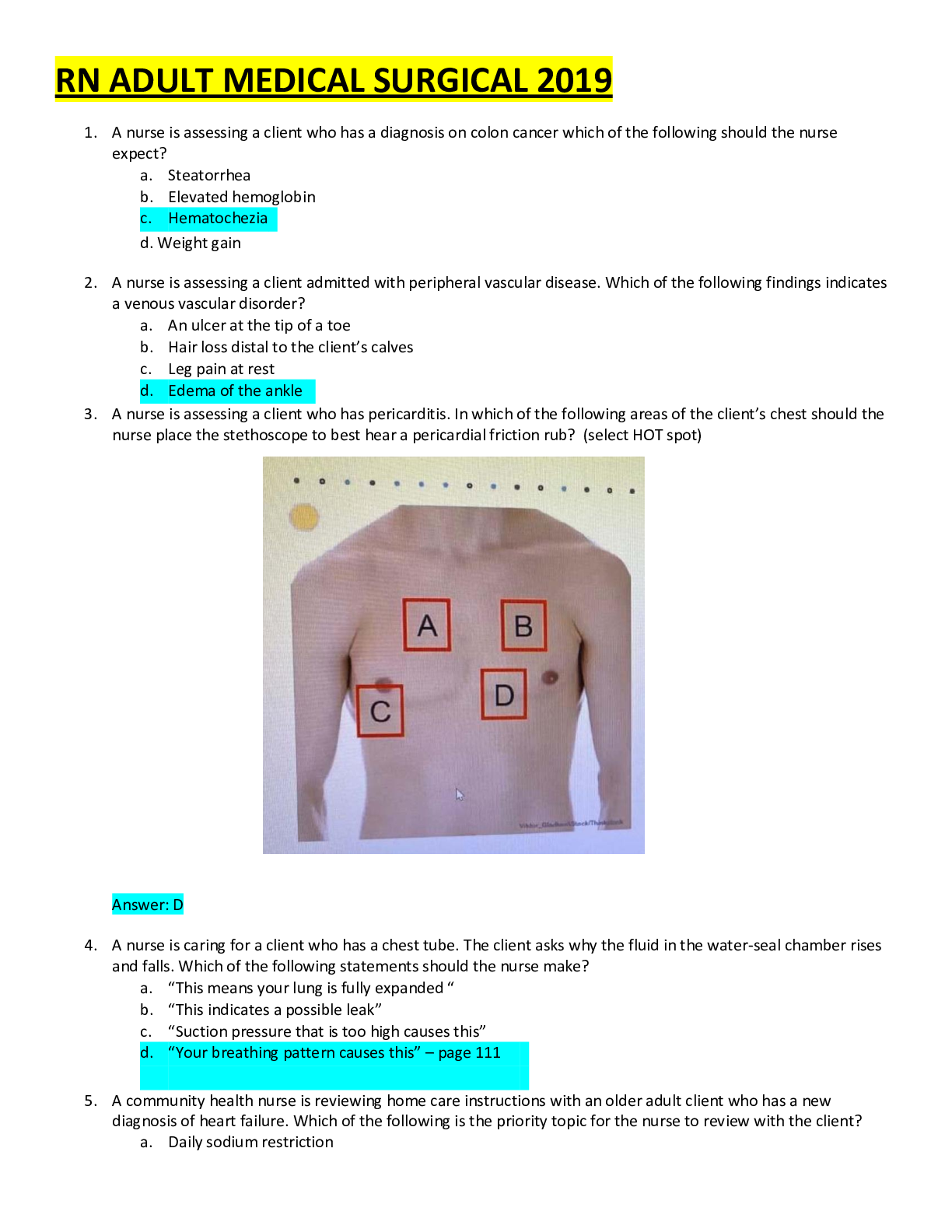 Health Care > MED-SURG EXAM > MEDSURG EXAM 3 QUESTIONS AND ANSWERS