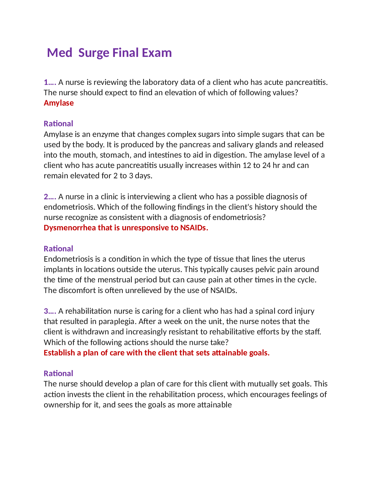 *NURSING > MED-SURG EXAM > 1470 ALL PRACTICE EXAM QUESTIONS AND ANSWERS FOR PN MEDICAL-SURGICAL ADULT MEDICAL SURGICAL 2022 100% CORRECT ANSWERED QUESTIONS WITH EXPLANATION