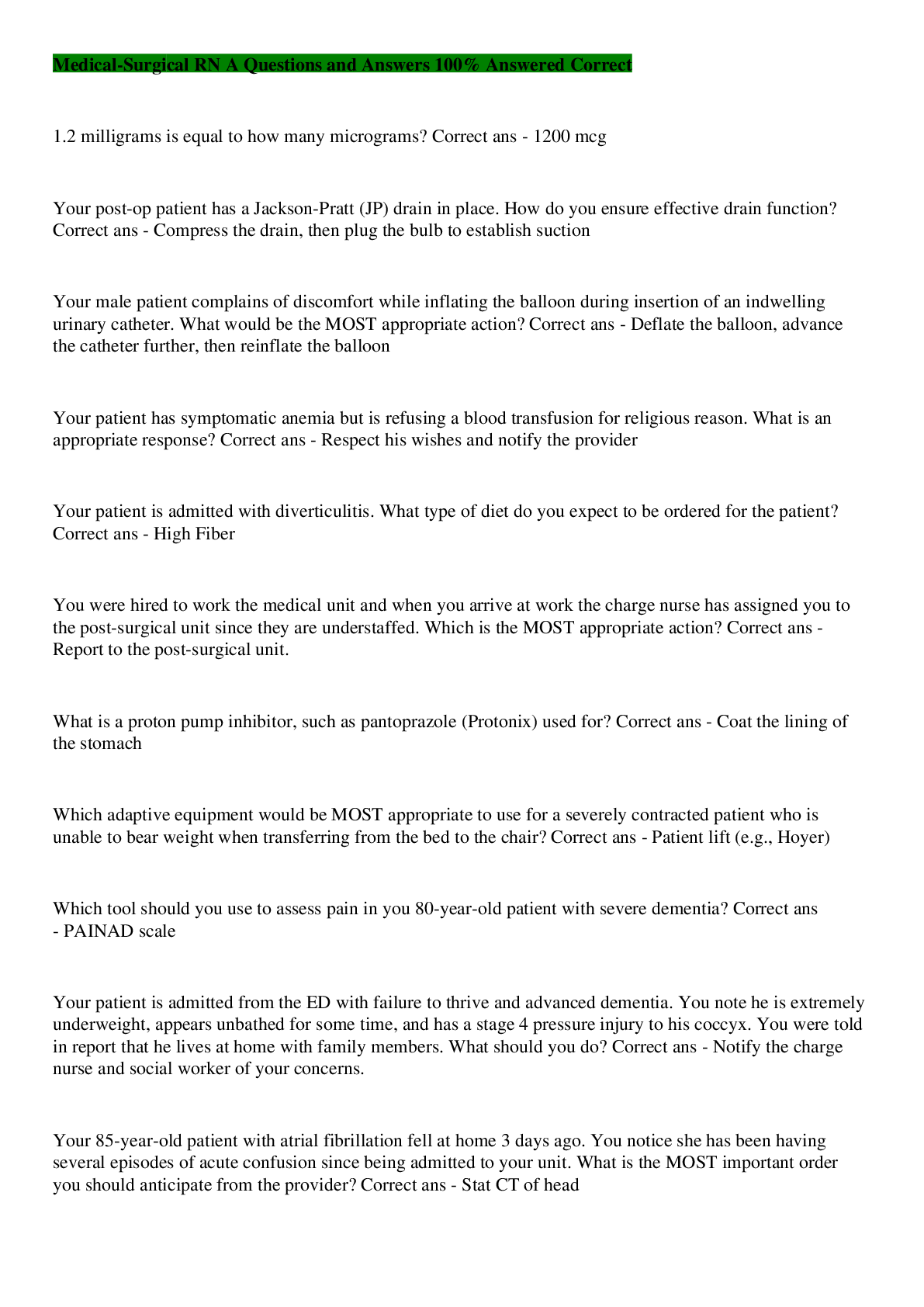 *NURSING > MED-SURG EXAM > Medical-Surgical B Questions And Answers (Download To Score A)