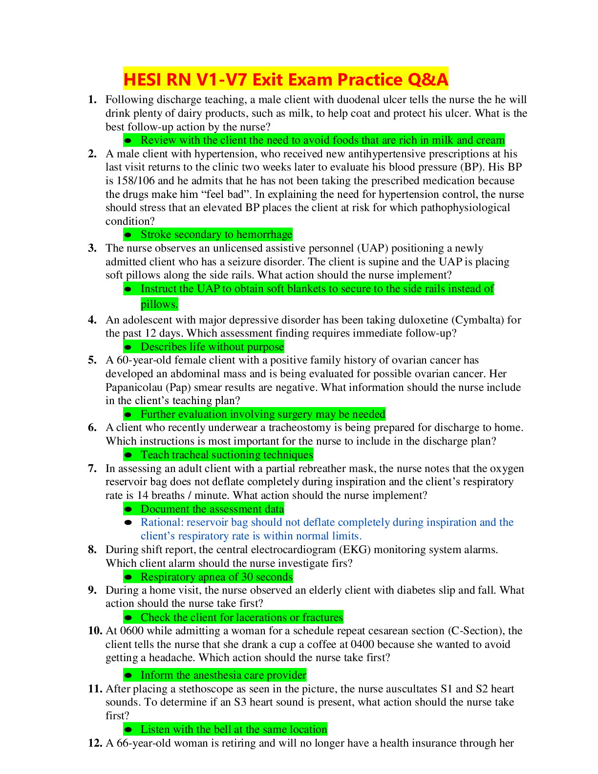 *NURSING > HESI MED SURG > HESI RN V1-V7 Exit Exam Practice Questions and Answers _Verified Answers.