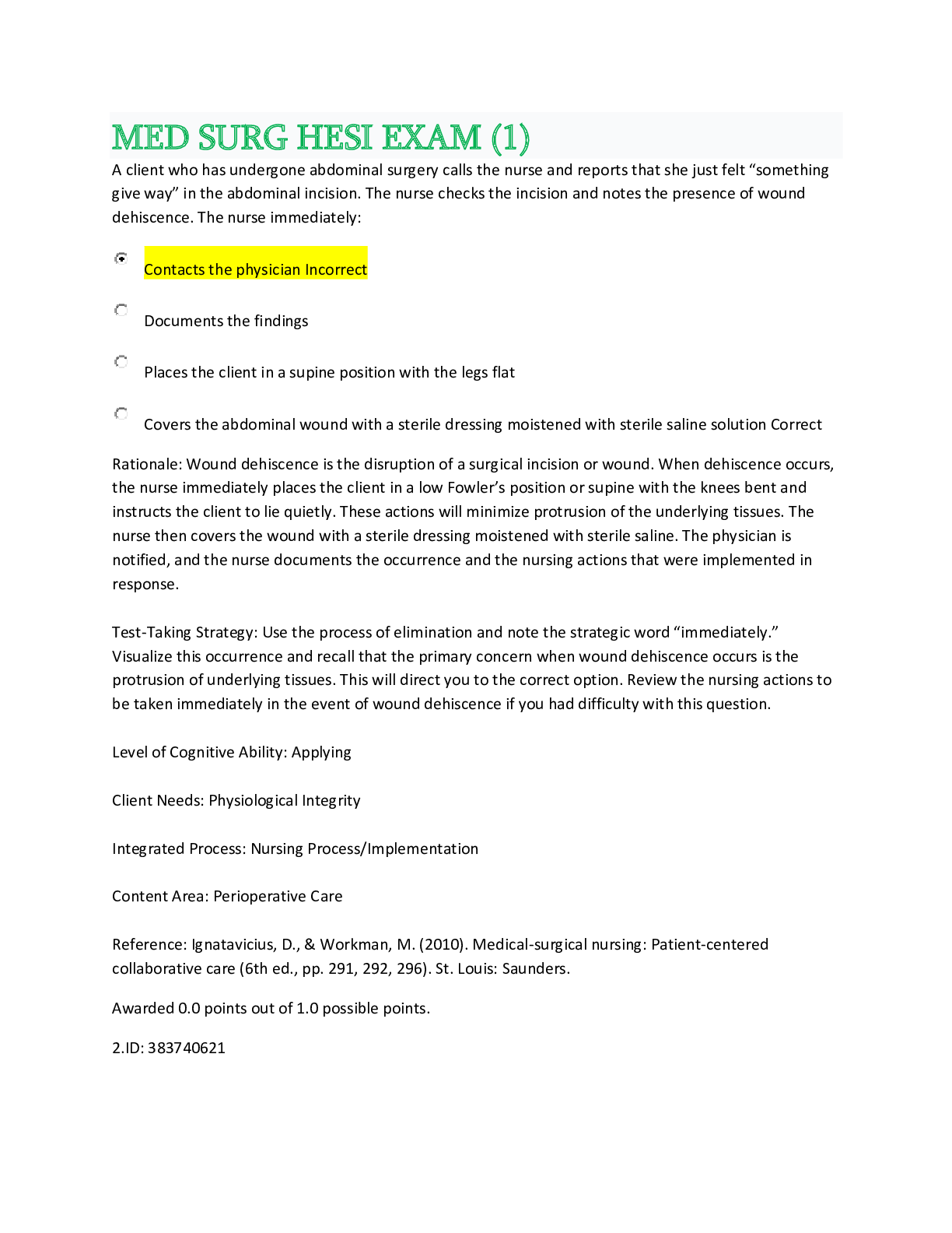 *NURSING > HESI MED SURG > PN Hesi Exit V1 COMPLETE QUESTIONS AND ANSWERS WITH ALL QUESTIONS CORRECT AND GRADED A ( correct answers are highlighted in green)