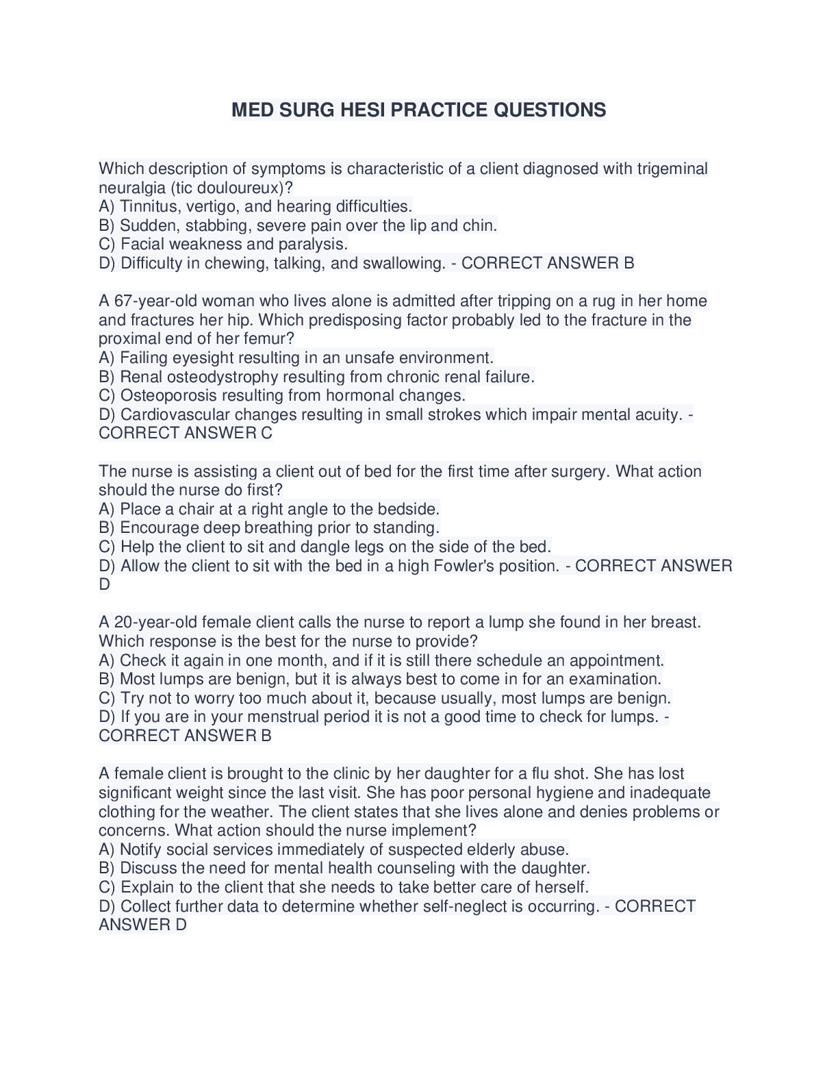 *NURSING > HESI MED SURG > MEDICAL SU 400 HESI MEDSURGE PRACTICE QUESTIONS AND ANSWERS( COMPLETE SOLUTION RATED A)SCORE A+