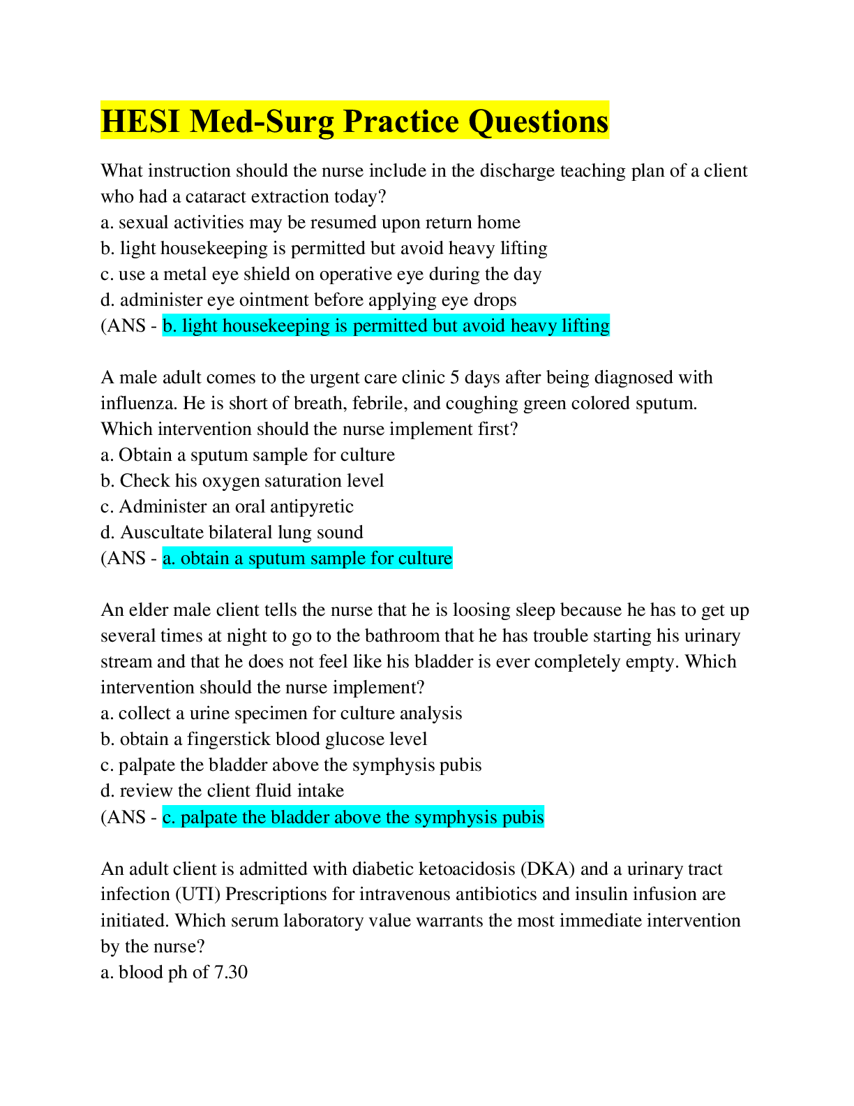 Health Care > HESI MED SURG > Med-Surg HESI Practice Questions/Latest 2022