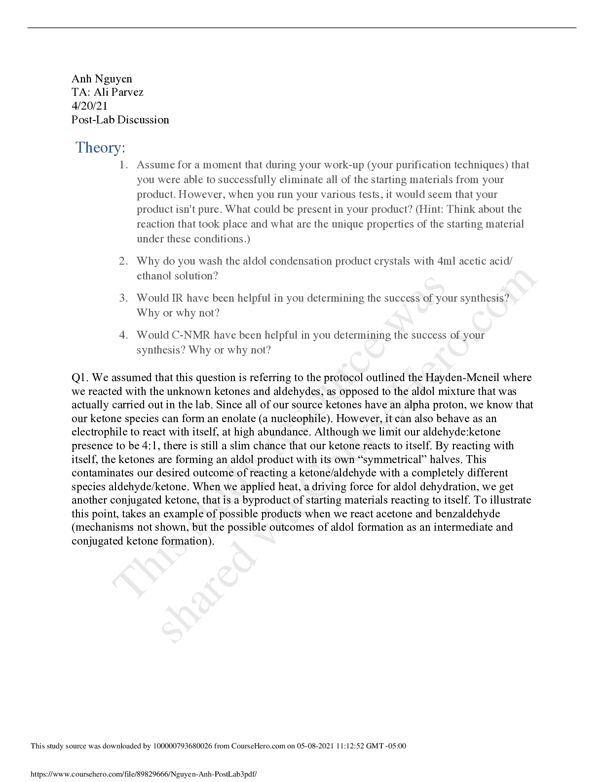 Biology > Lab Report > Whitfield School SCIENCE 101 Nguyen_Anh_PostLab3-REVIEWED BY EXPERTS-ALL ANSWERS CORRECT