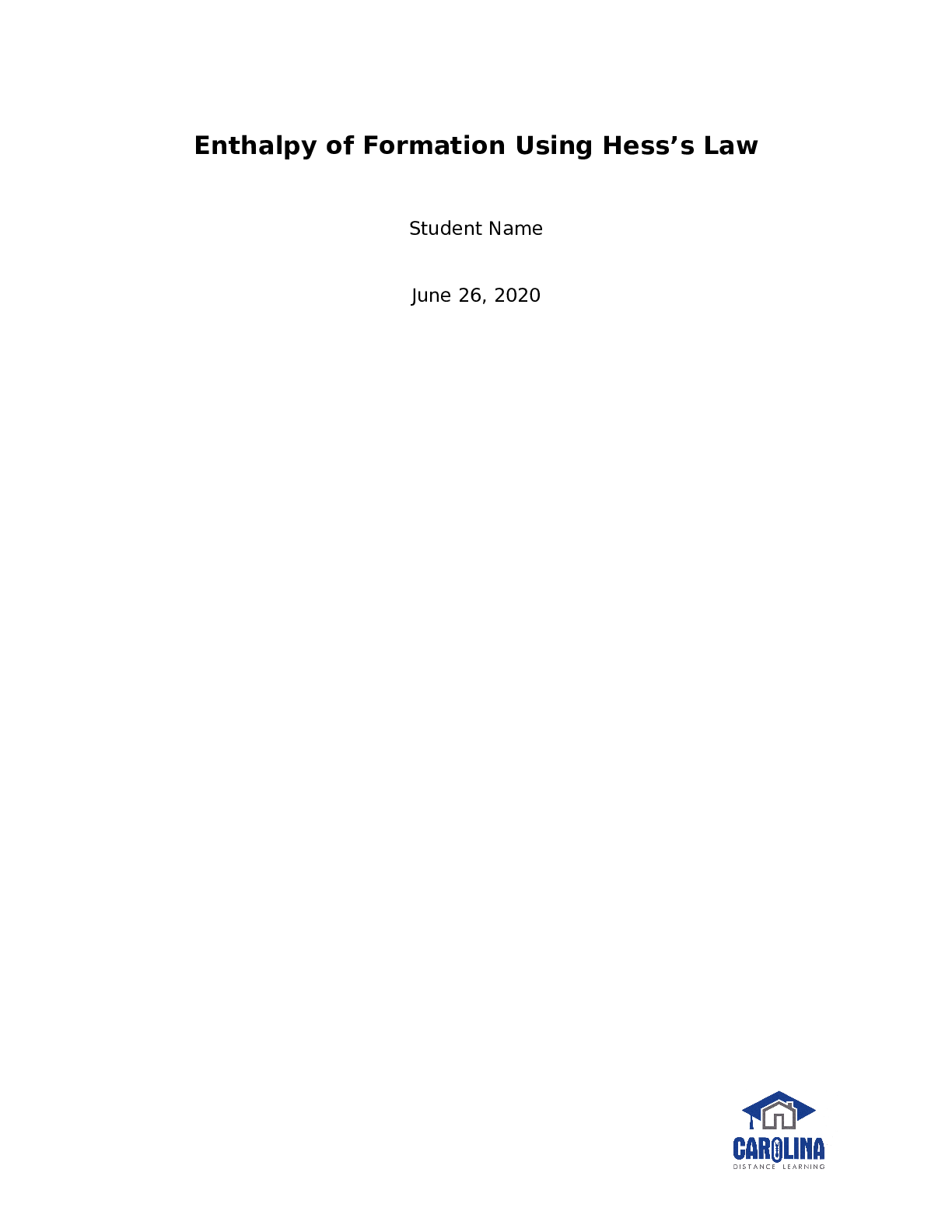 Chemistry > Lab Report > Enthalpy of Formation Using Hess’s Law