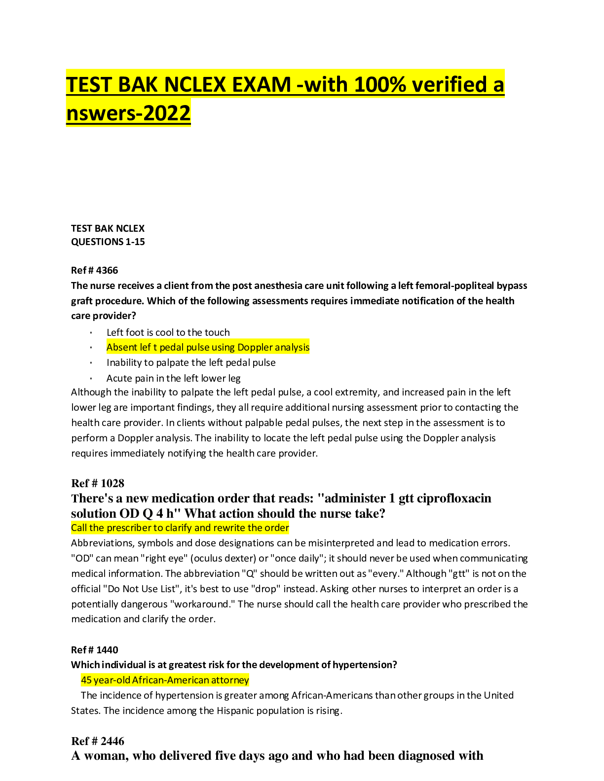 *NURSING > NCLEX > TEST BAK NCLEX EXAM -with 100% verified a nswers-2022
