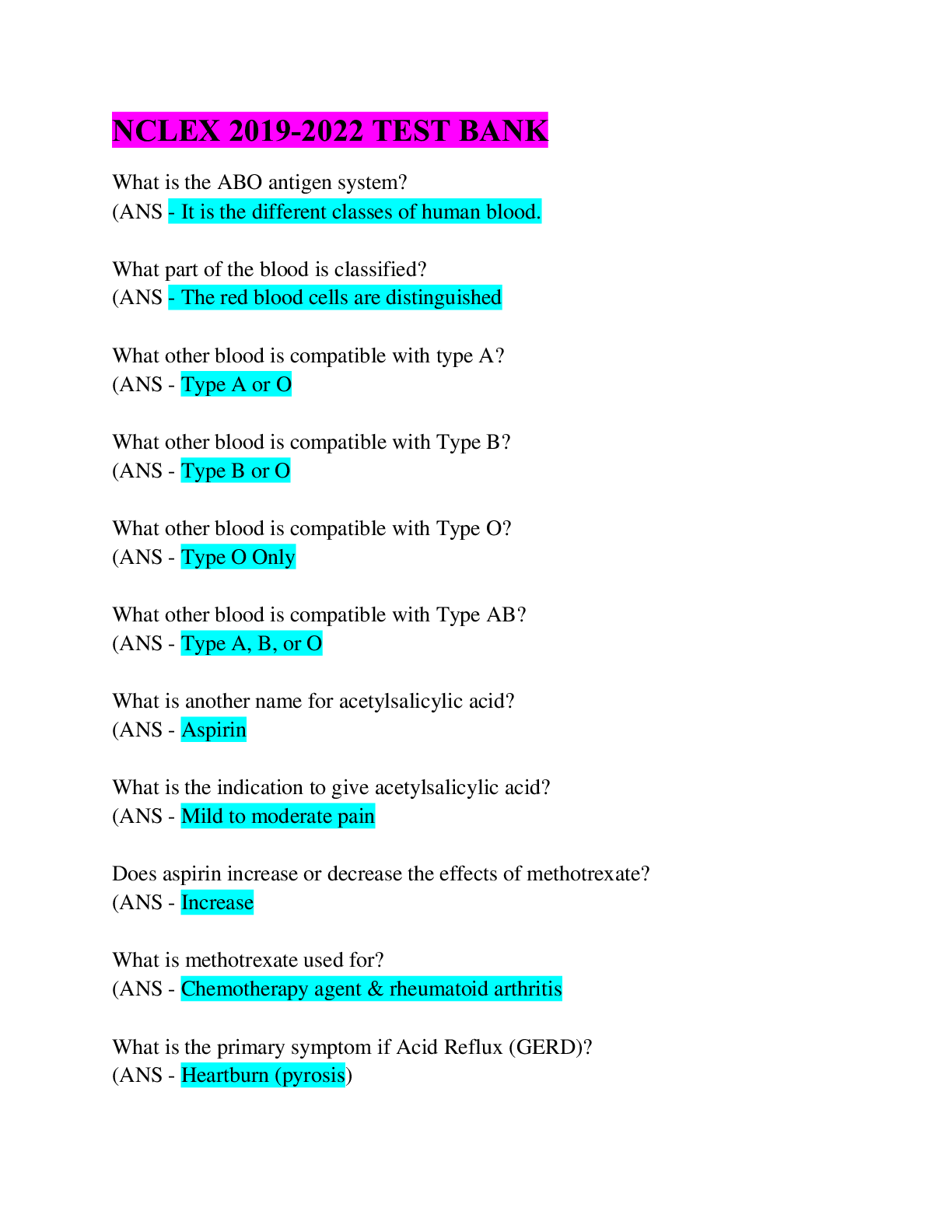 *NURSING > NCLEX > NCLEX REVIEW 2019-2022 TEST PLAN