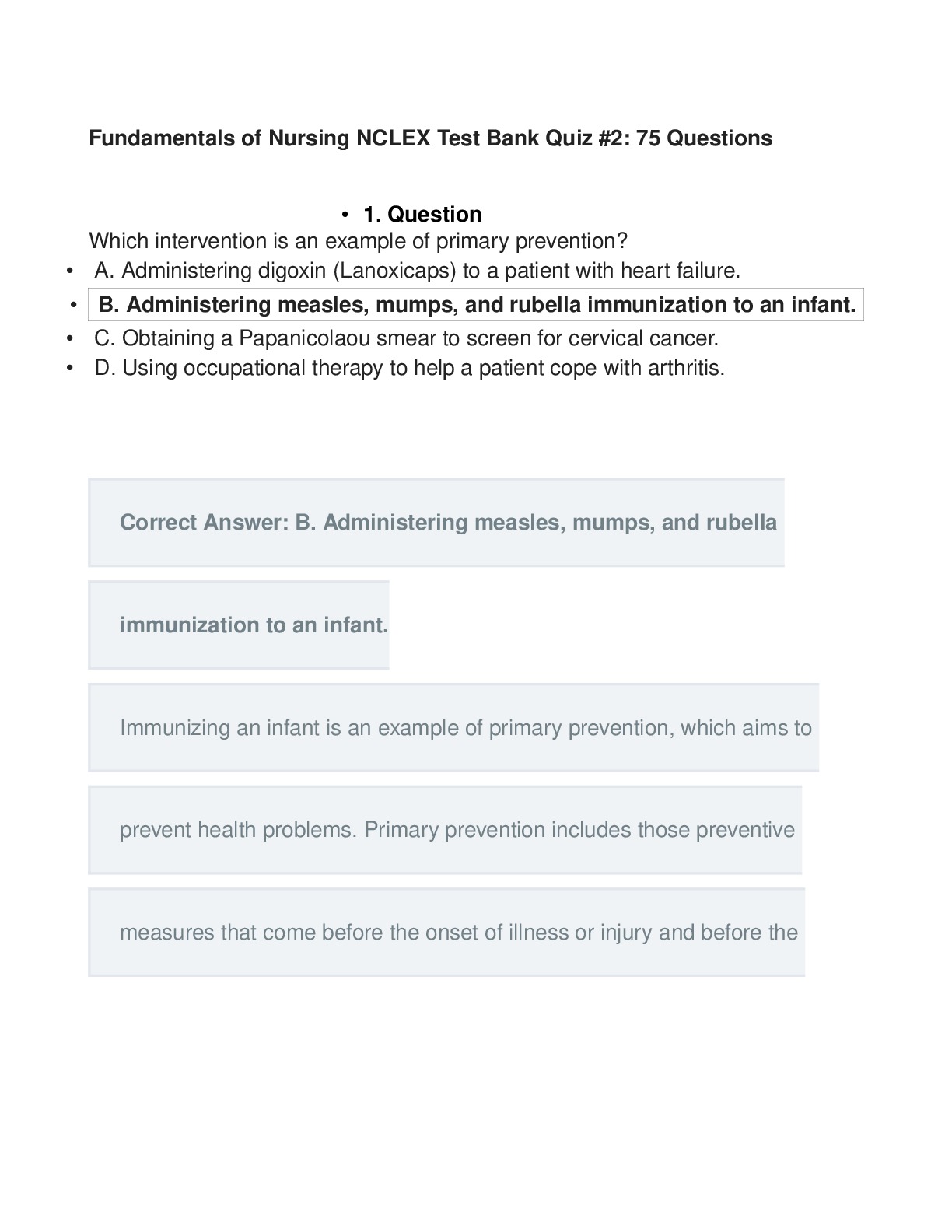 *NURSING > NCLEX > Fundamentals of Nursing NCLEX Test Bank Quiz #2: 75 Questions-It is a good revision material